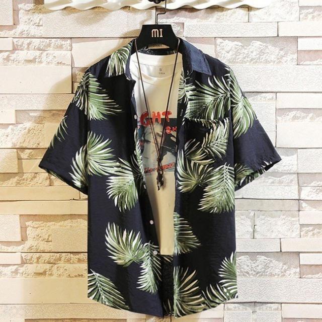 ハワイアン メンズ アロハシャツ メンズ 半袖シャツ 祭り ビーチ 大きいサイズ シャツ カジュアルシャツ ネイビー 夏物 春物 メンズファッション