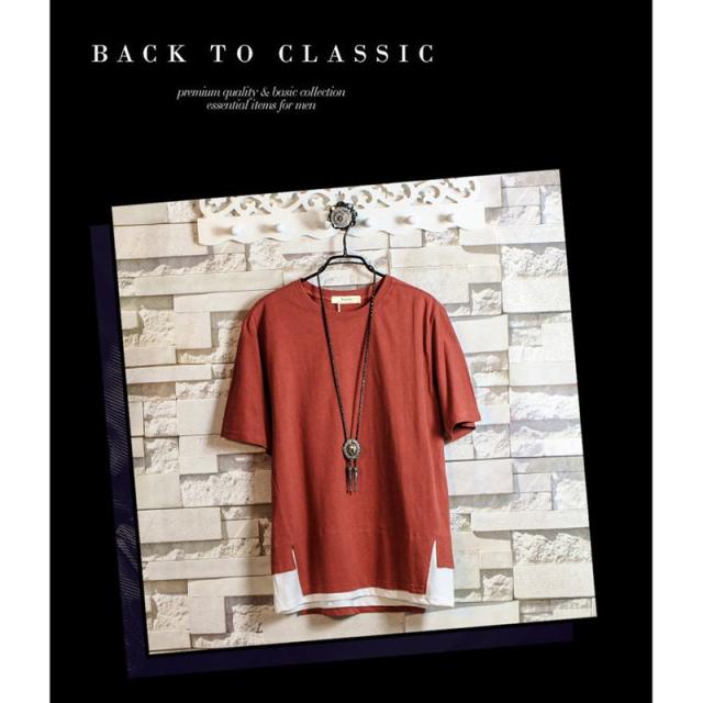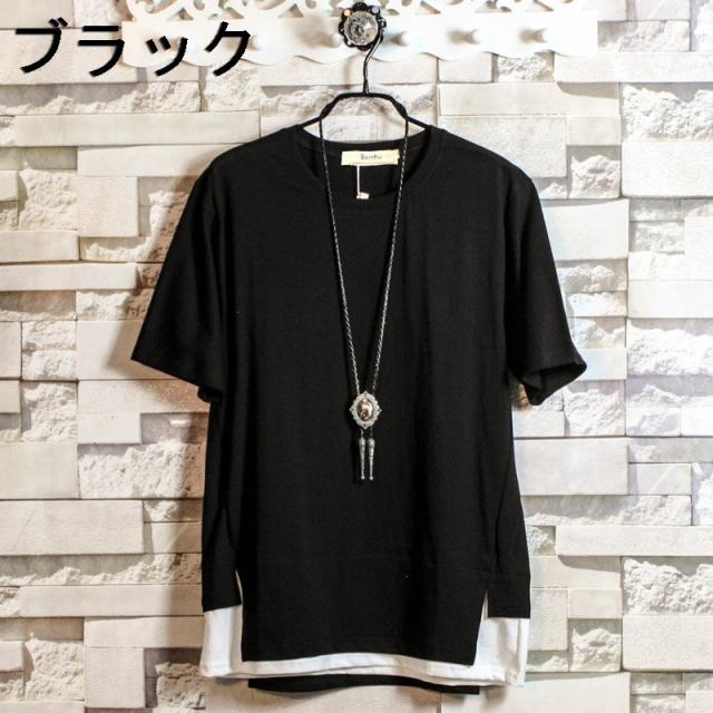 Tシャツ メンズ 半袖 半袖tシャツ 長袖Tシャツ 重ね着風 丸首 インナー カジュアル ゆったり 無地 夏 秋 新作