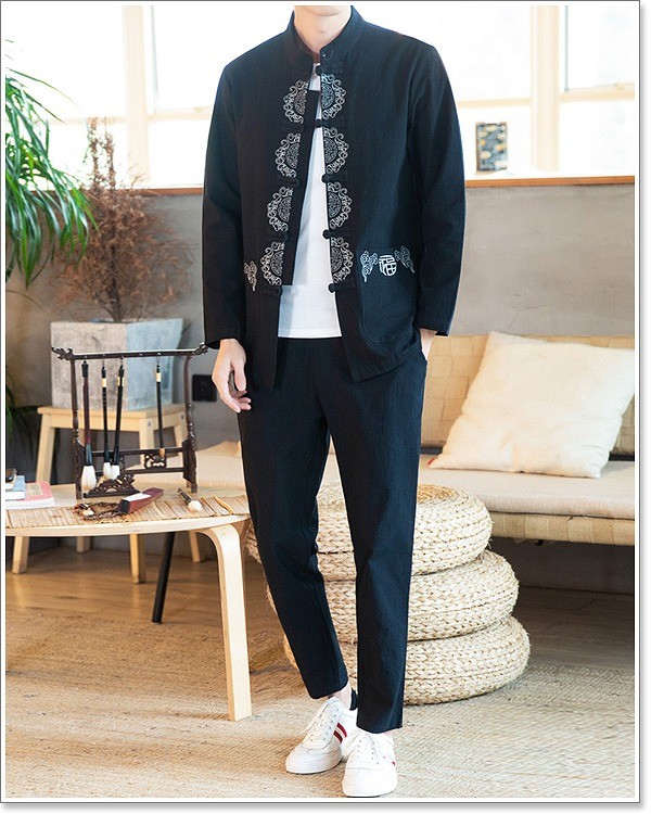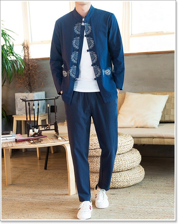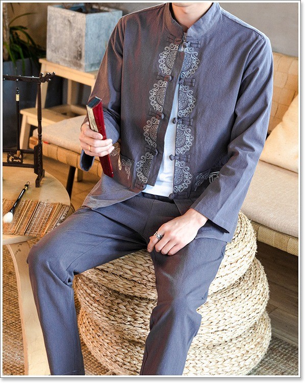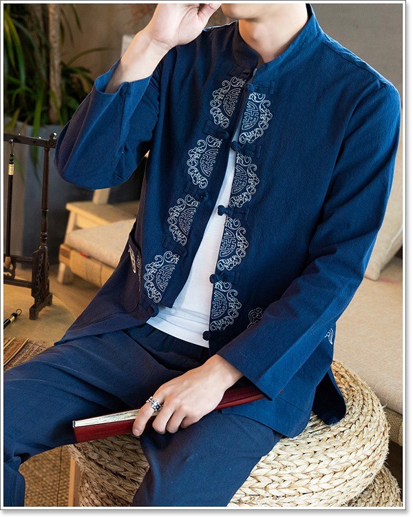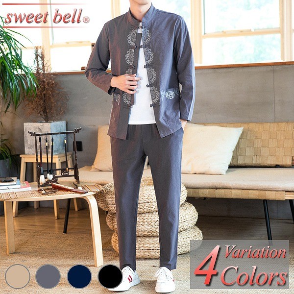 甚平 メンズ 長袖 作務衣 夏用 男性用 麻 浴衣 着物 刺繍 部屋着 夏祭り 花火大会 しじら織り おしゃれ 大きいサイズ セットアップ
