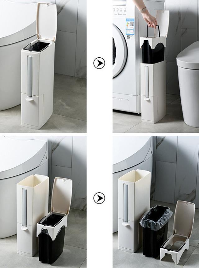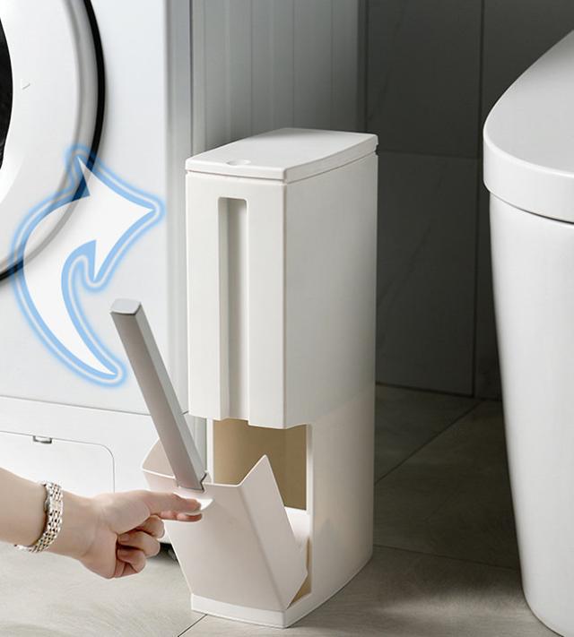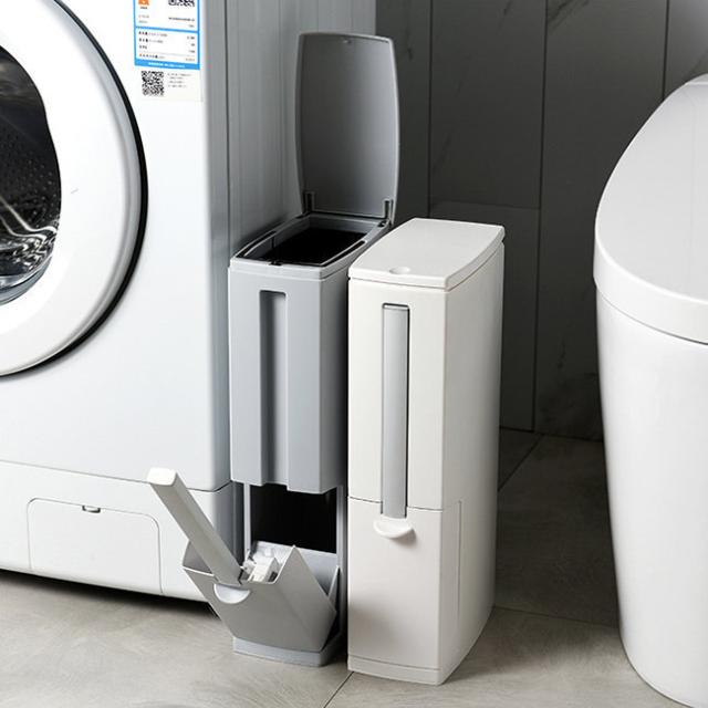 トイレブラシ付きゴミ箱 蓋付き 資源ゴミ 防臭 携帯便利 縦型 コンパクト 4L ブラシ ゴミ袋付き
