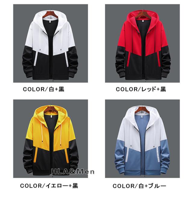 マウンテンパーカー メンズ 春服 ジャケット ウィンドブレーカー ブルゾン 配色 アウター フード付き 羽織り おしゃれ