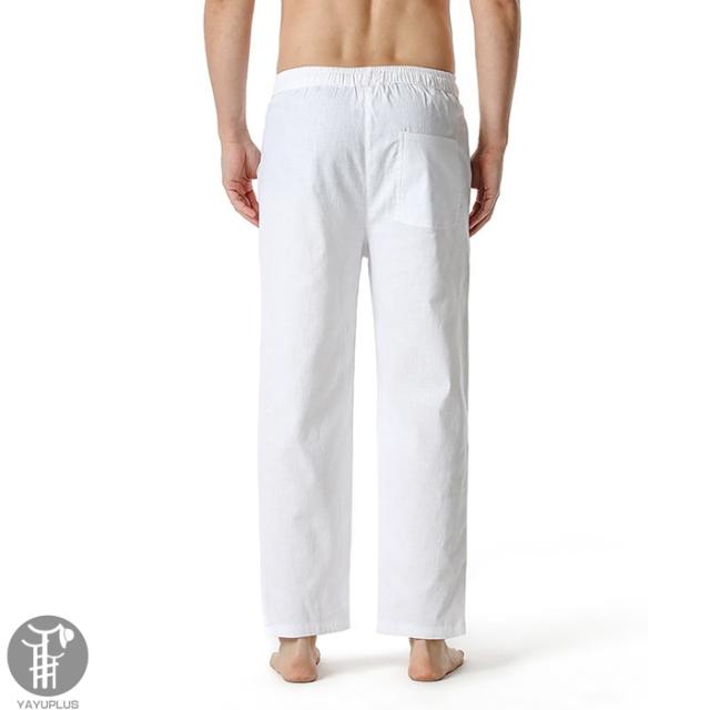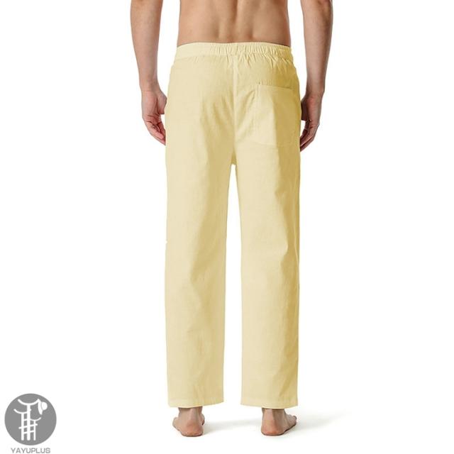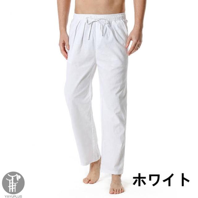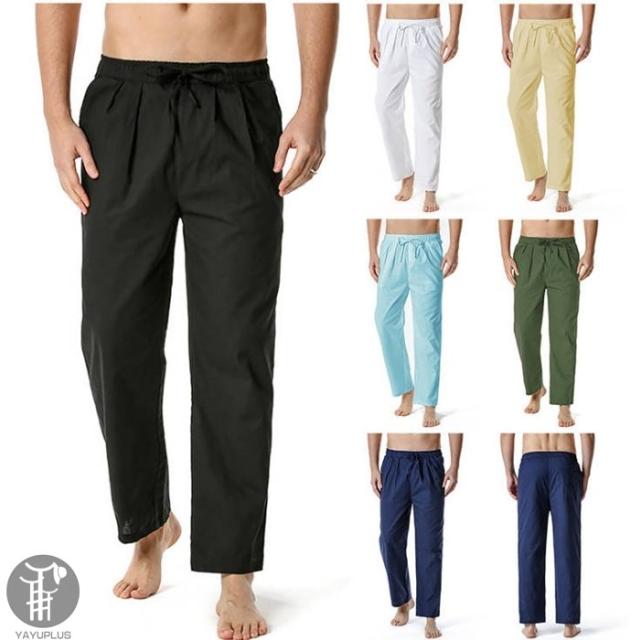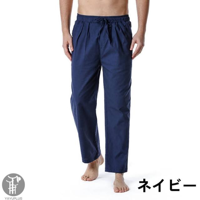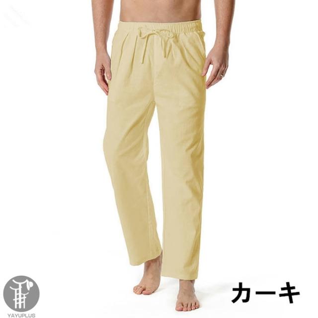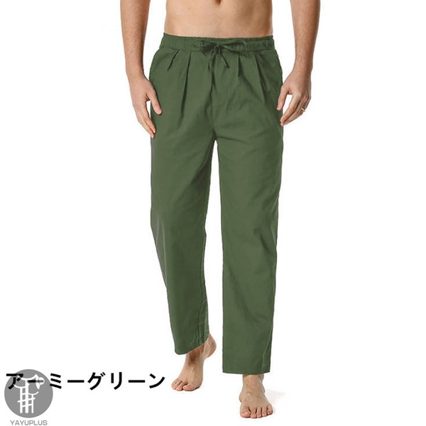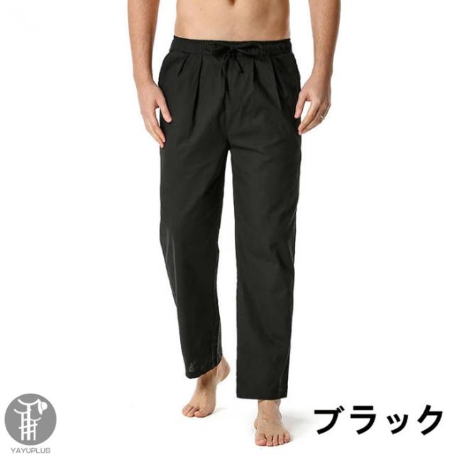 ロングパンツ ズボン メンズ ボトムス 無地 ストレート ヨガパンツ 亜麻 リネン カラーパンツ 春 夏 秋 黒 メンズファッション カジュアル