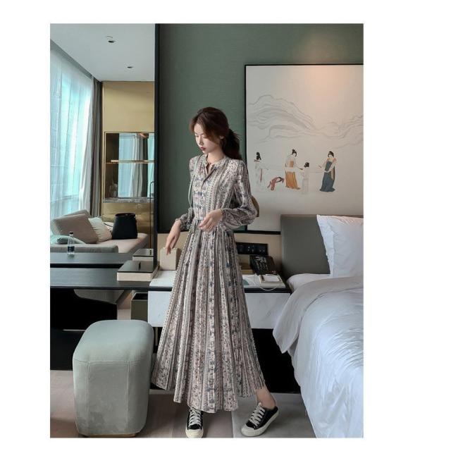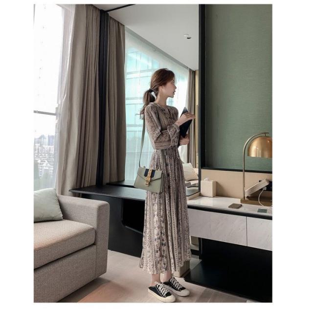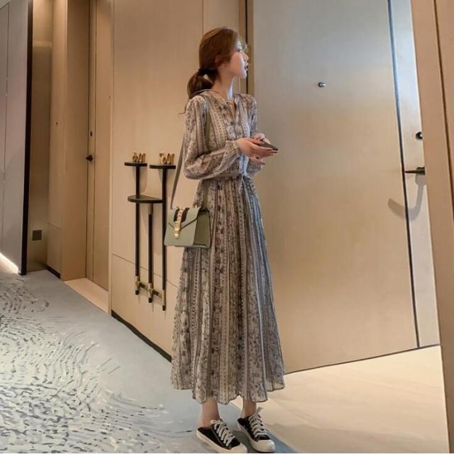 ワンピース レディース 40代 きれいめ 長袖 上品 春秋 マキシワンピース Vネック 花柄 Aライン 大きいサイズ パーティードレス 韓国風 おしゃれ 通勤 OL 着痩せ