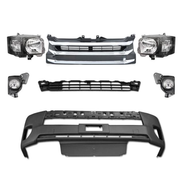 200系 ハイエース 4型 ワイド フロント 7点 フェイス チェンジ Ver,4 ハロゲン H4 ヘッドライト グリル バンパー セット
