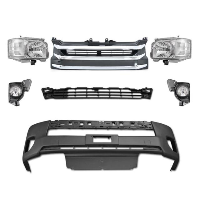 200系 ハイエース 4型 ワイド フロント 7点 フェイス チェンジ Ver,2 ハロゲン H4 ヘッドライト グリル バンパー セット