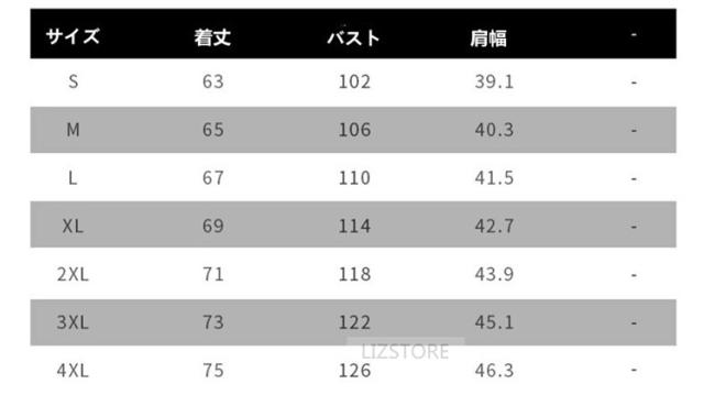 | サイズ | S M L XL 2XL 3XL 4XL |
