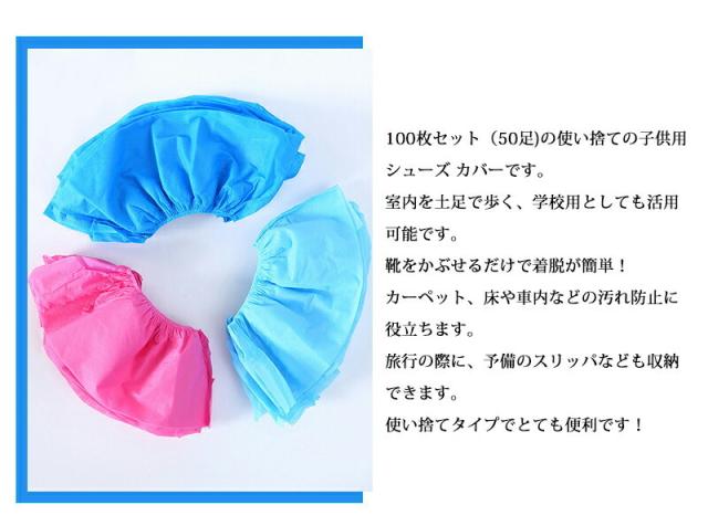 便利 シューズカバー 不織布シューズカバー 足カバー 子供用 100枚(50足 使い捨て 厚手 汚れ防止 靴カバー