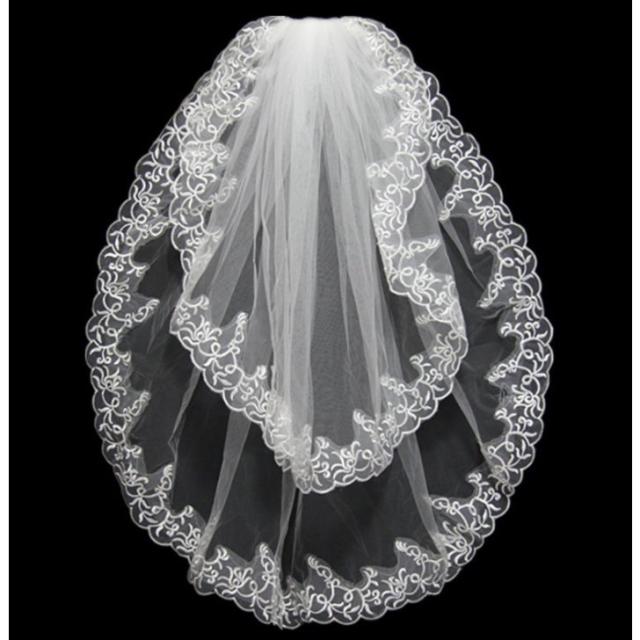 ダウンベール ウエディングベール花柄レース刺繍ブライダル結婚式フラワーベール 花嫁 披露宴ウェディング小物 二次会ホワイト オフホワイト全店二点送料無料