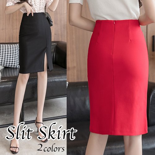 スカート レディース ひざ丈 タイト シンプル カジュアル きれいめ スリット