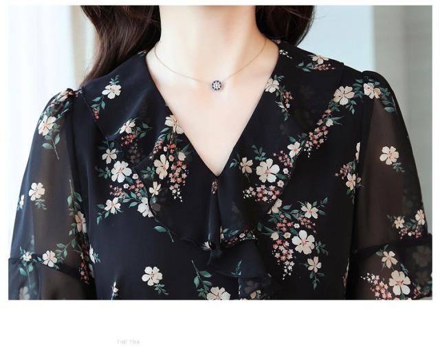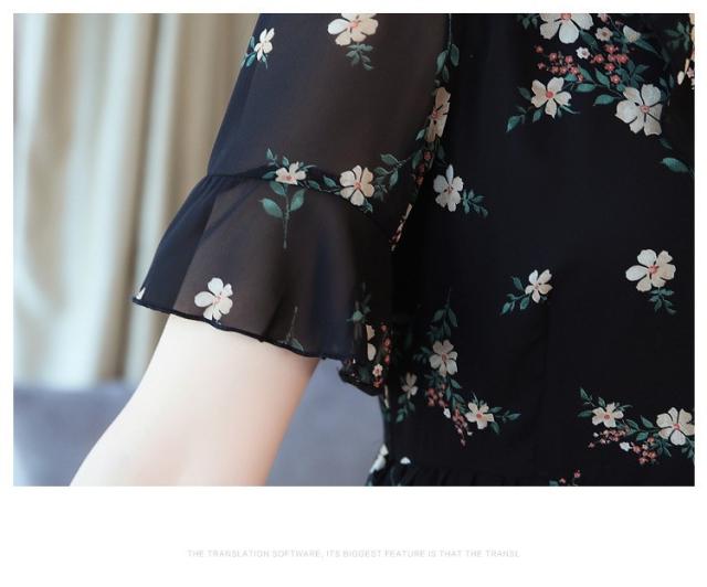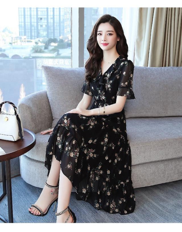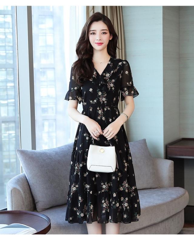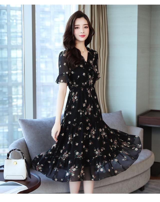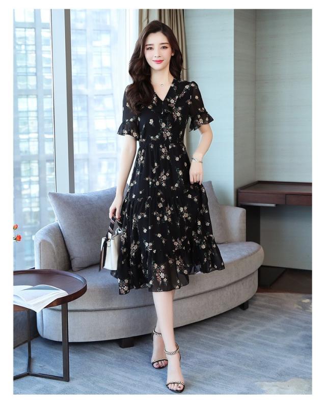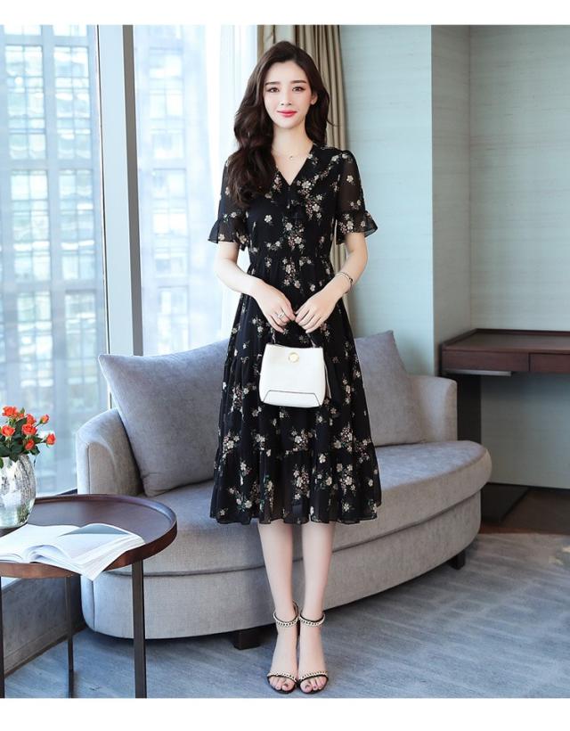 ワンピース レディース 40代 シフォンワンピース 春夏 膝丈ワンピース 半袖 Vネック 花柄 ロングスカート オシャレ 体型カバー お出かけ 大人可愛い30代 50代