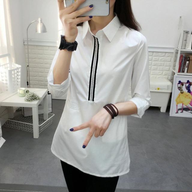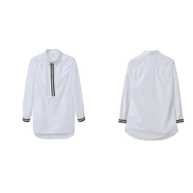 ブラウス シャツ レディース トップス 長袖 ロング丈 チュニック ロングシャツ ハーフボタン 前ボタン 襟付き ポケット 白 おしゃれ きれいめ か