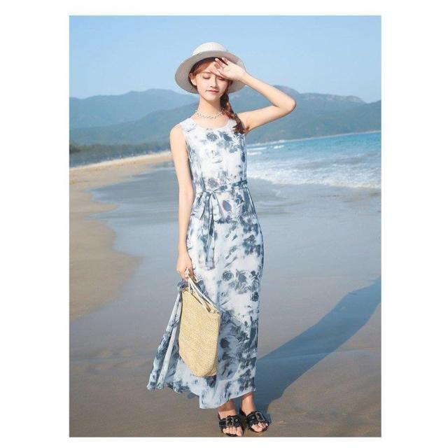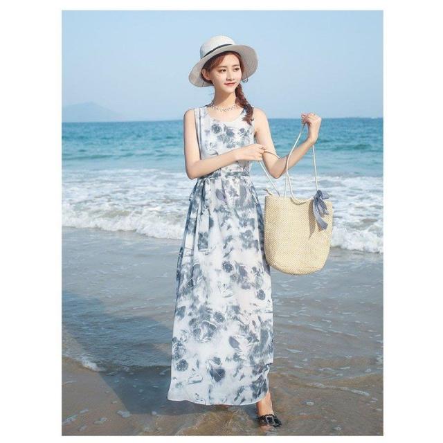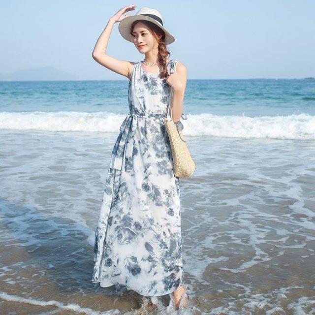 マキシワンピース 夏 レディース シフォンワンピース チュニック マキシワンピース 花柄 ノースリーブ ビーチワンピース