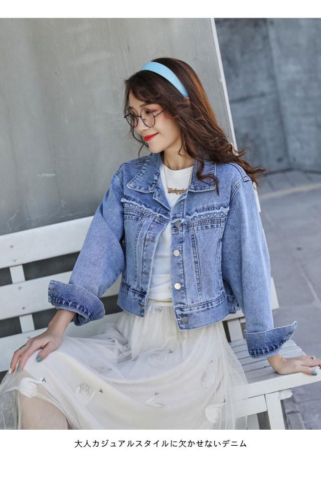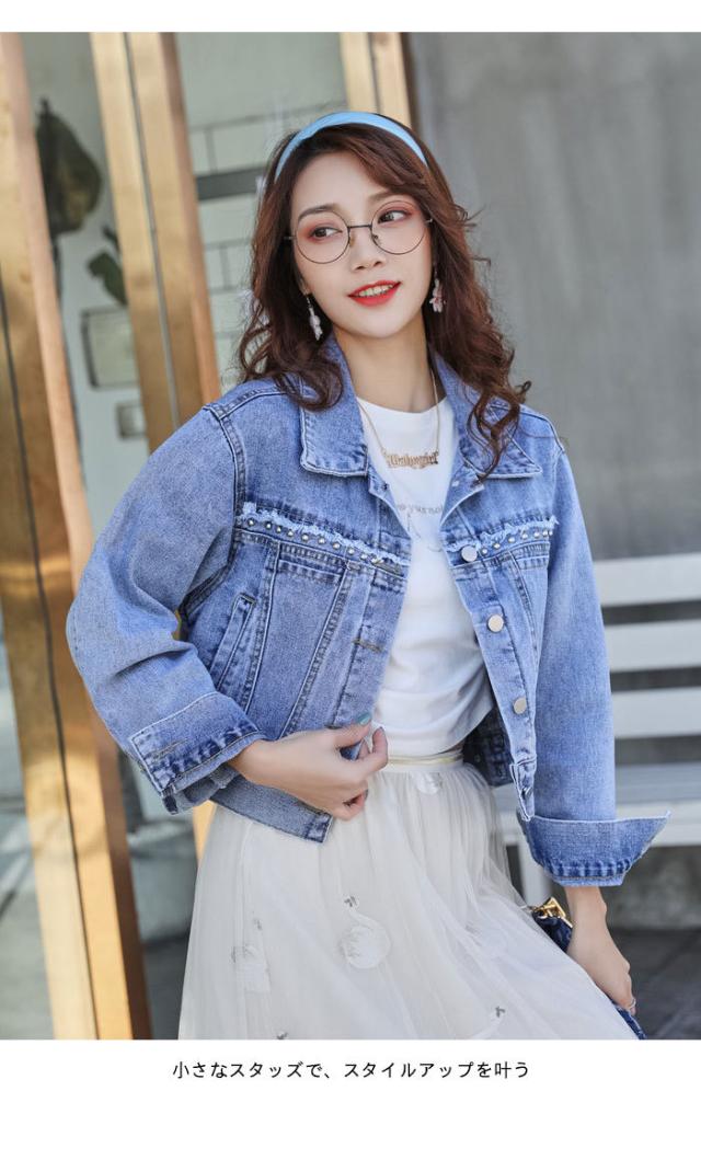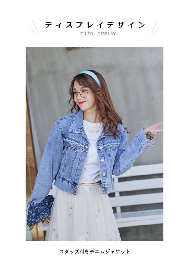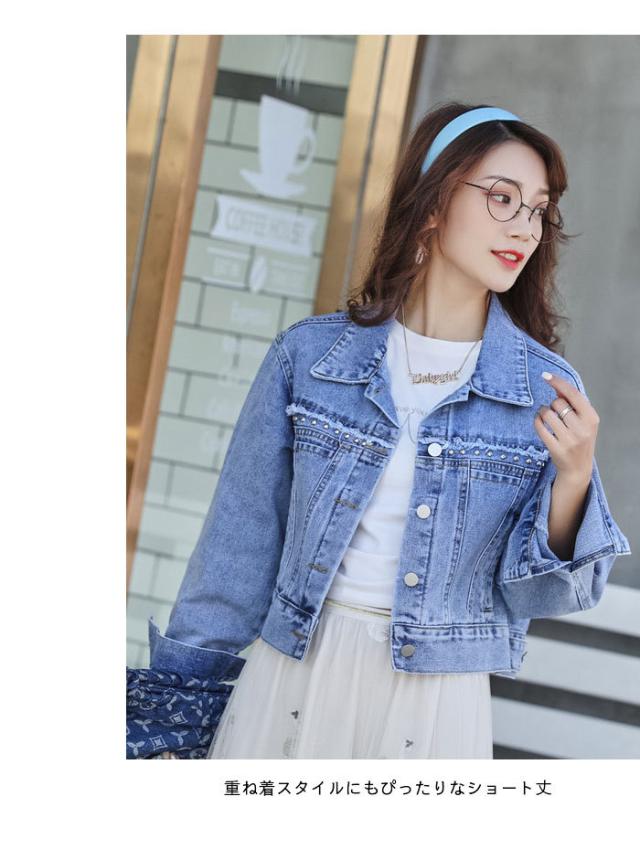 【送料無料】デニムジャケット レディース デニム Gジャン ジャケット スタッズ付き ショート丈 ショートジャケット フリンジ付き 長袖 ライトアウター