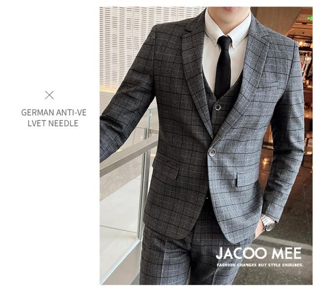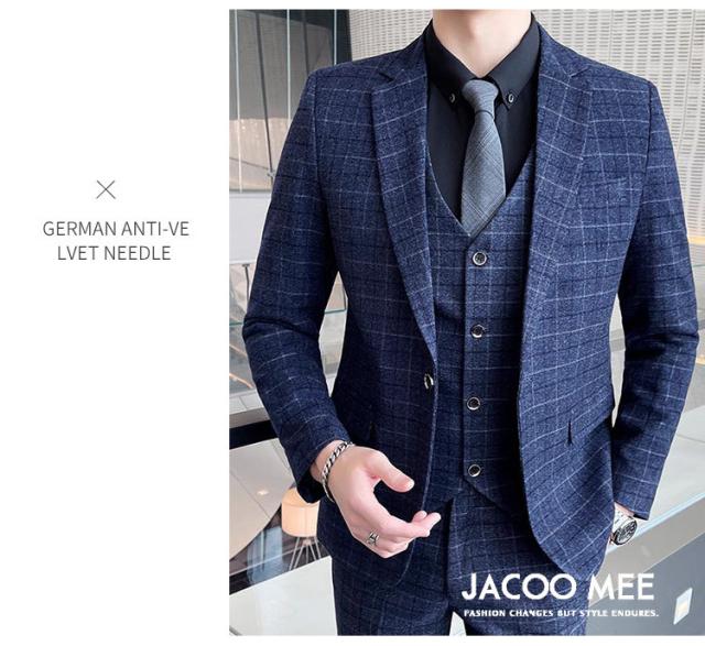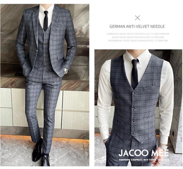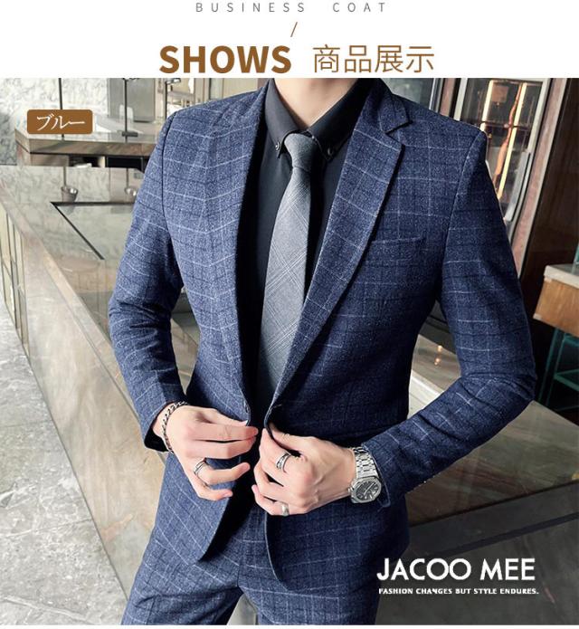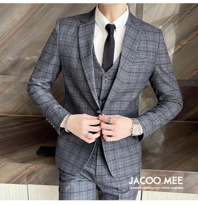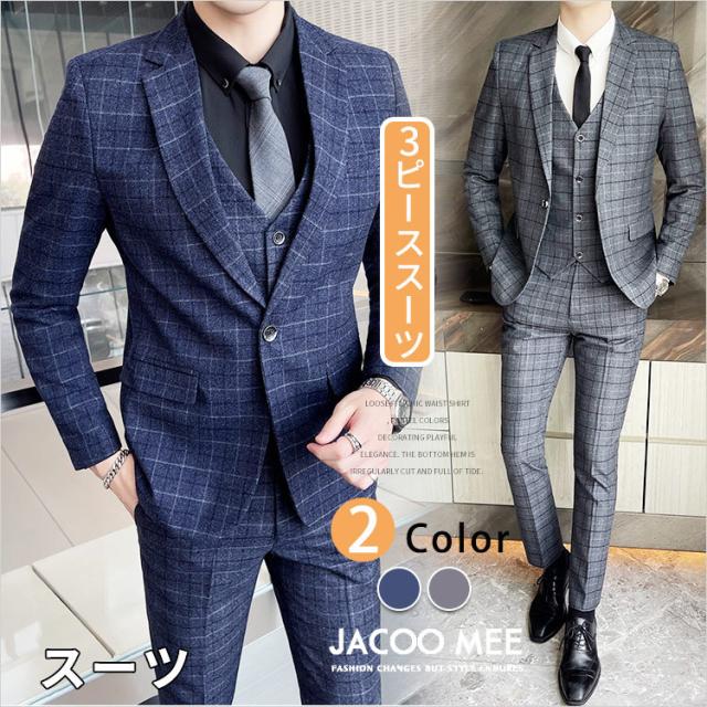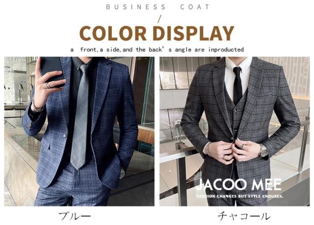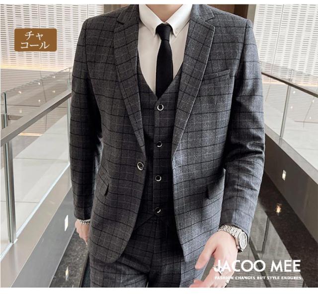 スリーピーススーツ メンズ カジュアルスーツ チェック柄 3ピーススーツ ベスト付き 通勤 メンズ テーラードジャケ ビジネスジャケット 韓国風 新作 送料無料