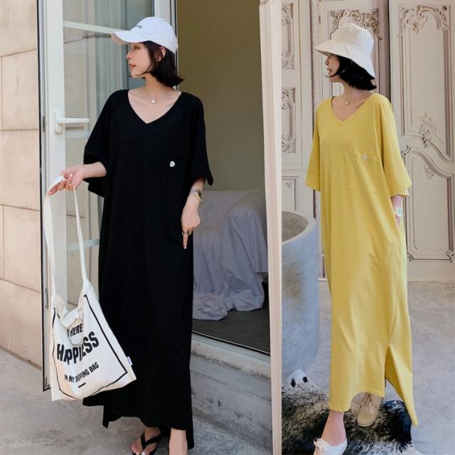 ワンピース レディース 40代 春夏新作 きれいめ マキシワンピース 半袖 ロング丈tシャツワンピーススカート オシャレ 韓国風 カジュアル 大きいサイズ