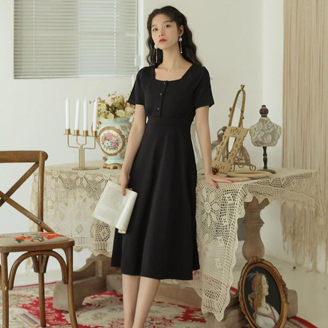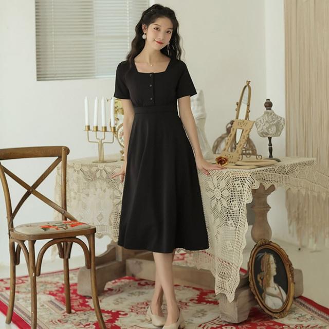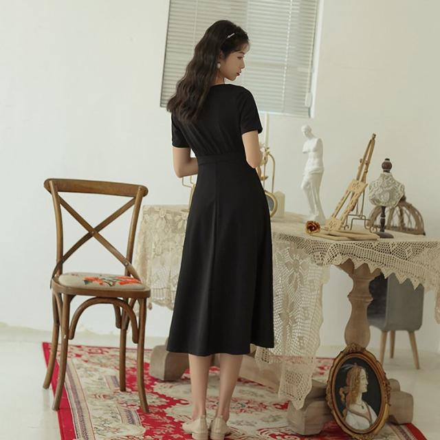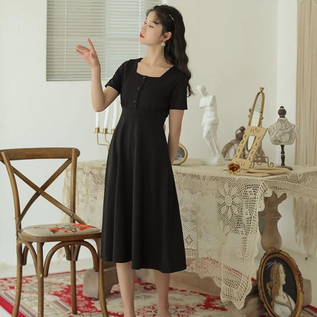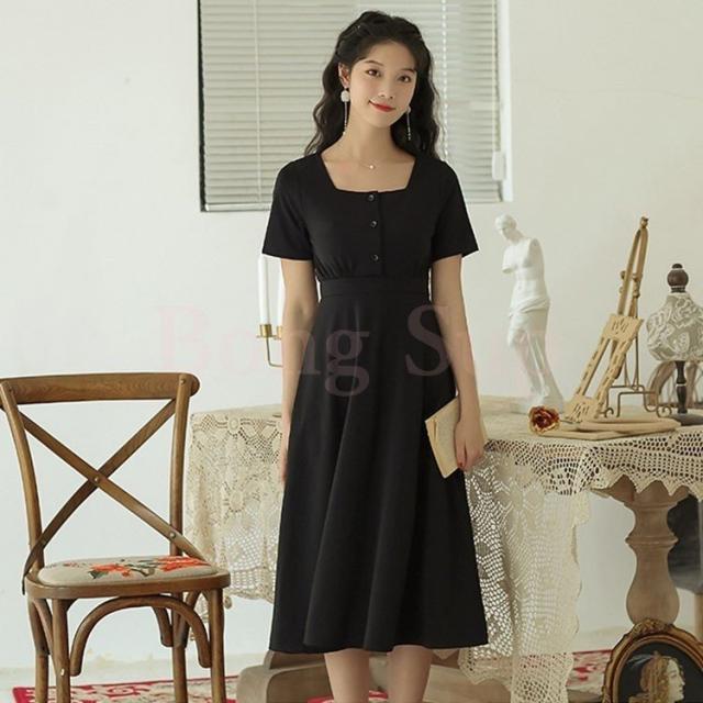 ワンピース レディース 夏 半袖 きれいめ ロング丈ワンピース 韓国風 通勤 ワンピース 黒 ワンピース オフィス オシャレ カジュアル ゆったり シンプル