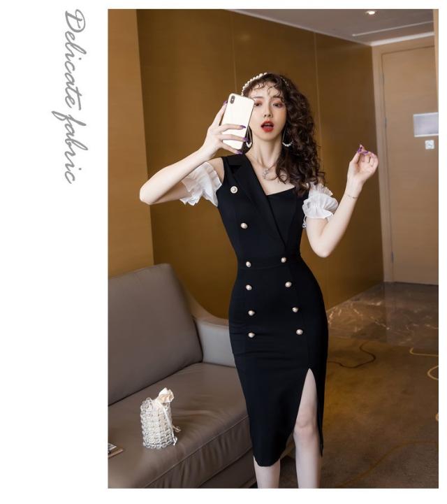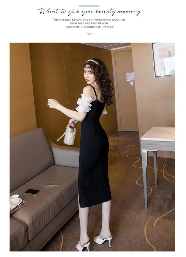 ワンピース レディース 夏 半袖 不規則 きれいめ 膝丈ワンピース 韓国風 セクシー 肩出し 配色 オシャレ カジュアル 着痩せ ビジネス