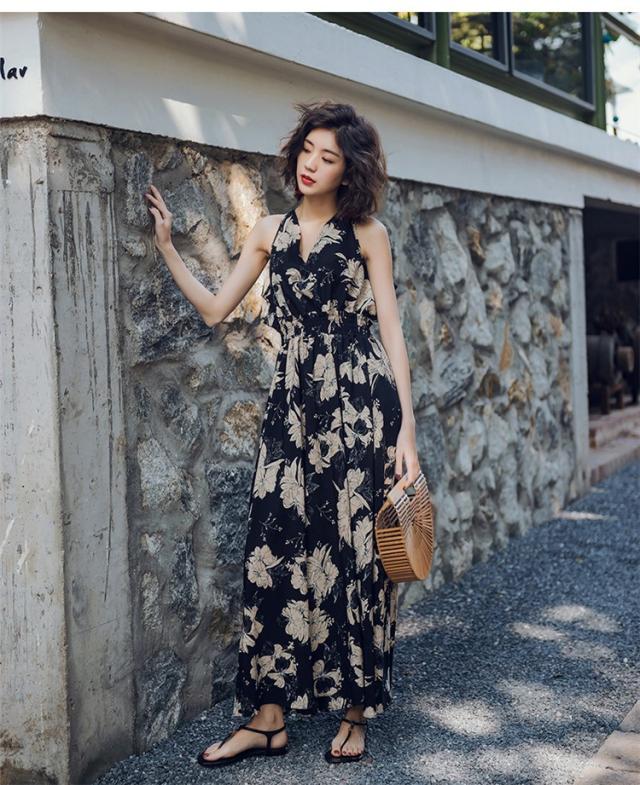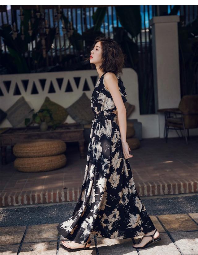 ワンピース レディース 春夏 ノースリープ 花柄 肩出し マキシ丈 ワンピース Aライン ロング 韓国風 オシャレ 着痩せ 上品 新作 ドレス