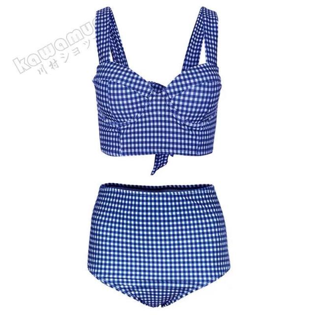 水着 レディース ハイウエスト セクシー ビキニ 2点セット 人気 20代 30代 ママ水着 チェック かわいい おしゃれ ビーチ水着 浴水泳 レディース