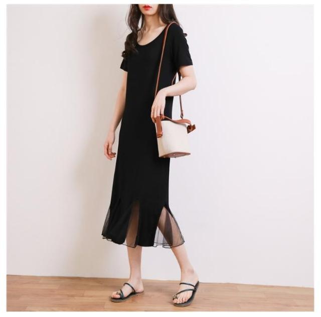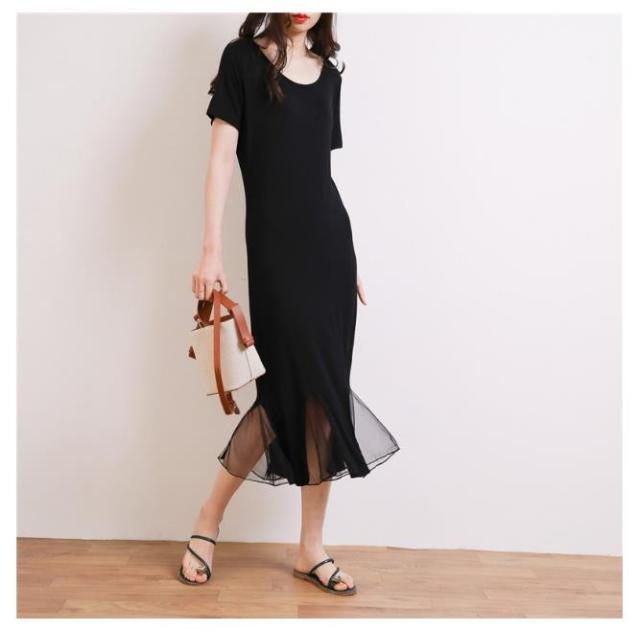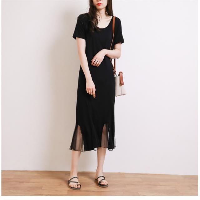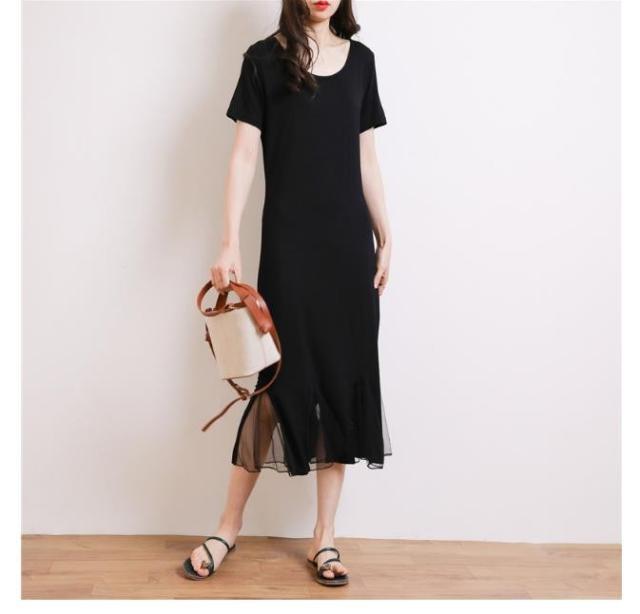 レディースニット ワンピース 半袖 ロング丈 ワンピース 可愛い 春夏 ワンピース