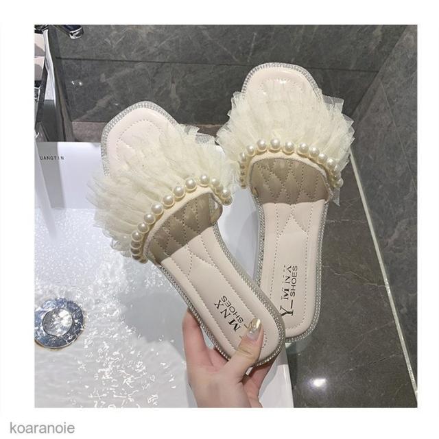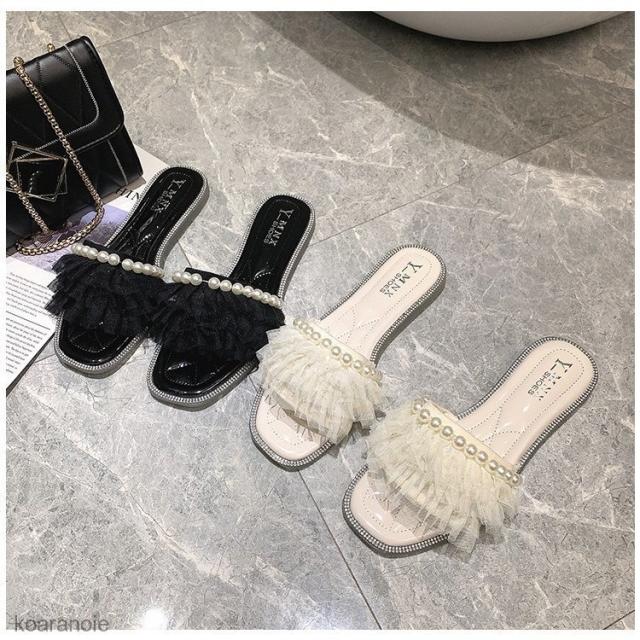 サンダル レディース スリッパ ビーサン レース ぺったんこ スリッパ 夏サンダル 歩きやすい 夏シューズ お洒落 可愛い