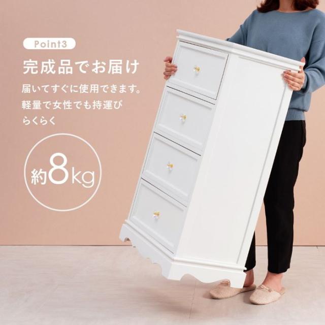 チェスト タンス 木製 収納棚 4段 幅50cm 完成品 クラシカル ホワイト 白い家具 収納家具