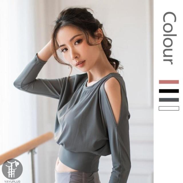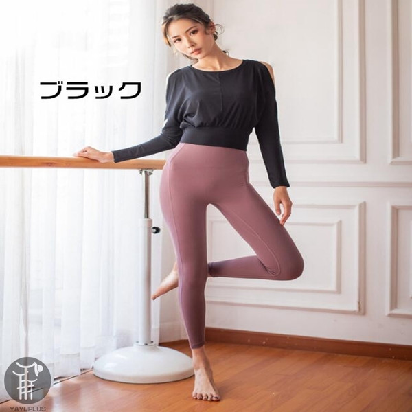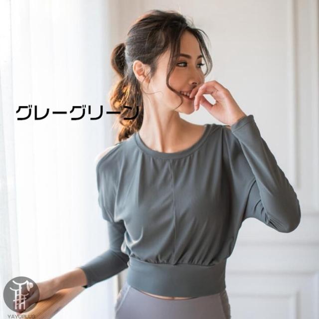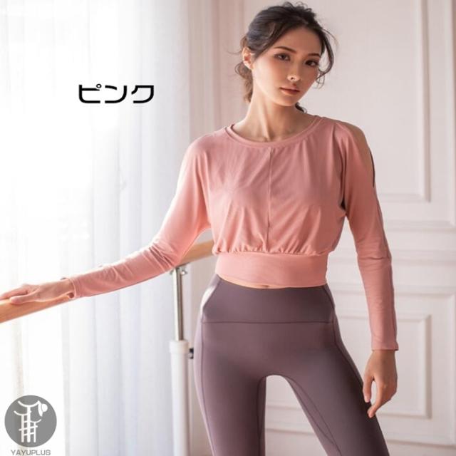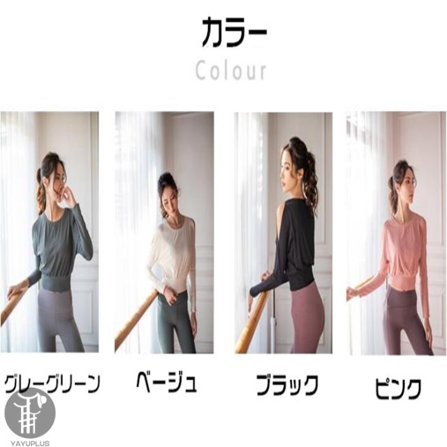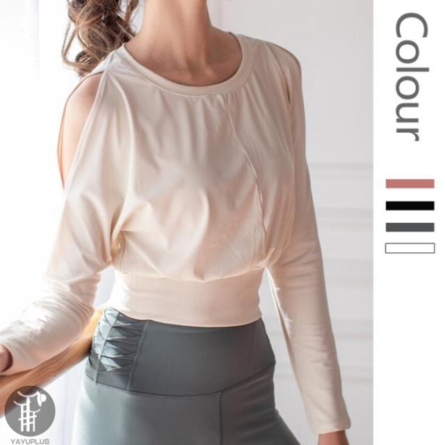 ヨガウェア Tシャツ 長袖 レディース トップス オープンショルダー フィットネスウェア スポーツウェア ジム ランニング ジョギング ウォキング 代引不可