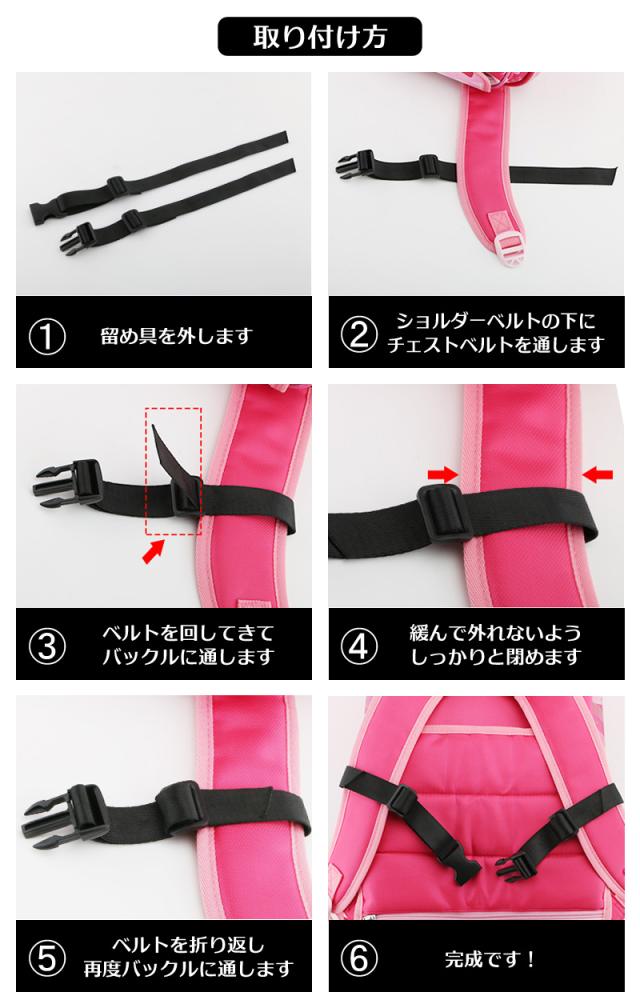 もともとチェストベルトが付いていないタウンユースのリュックやお子様のランドセルなどにオススメです。