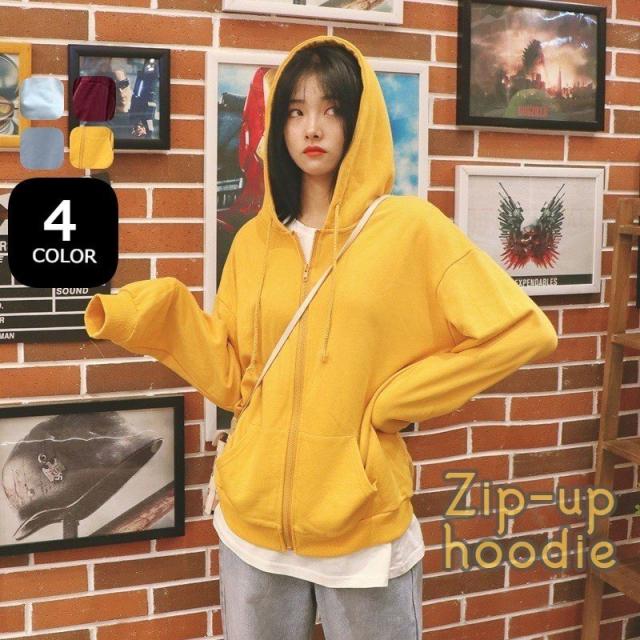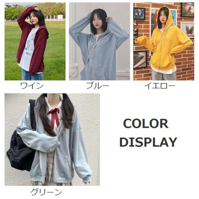 パーカー ジップアップ レディース 女性 トップス アウター フーディ 前開き オーバーサイズ ビッグシルエット ゆったり 体系カバー ファスナー 無