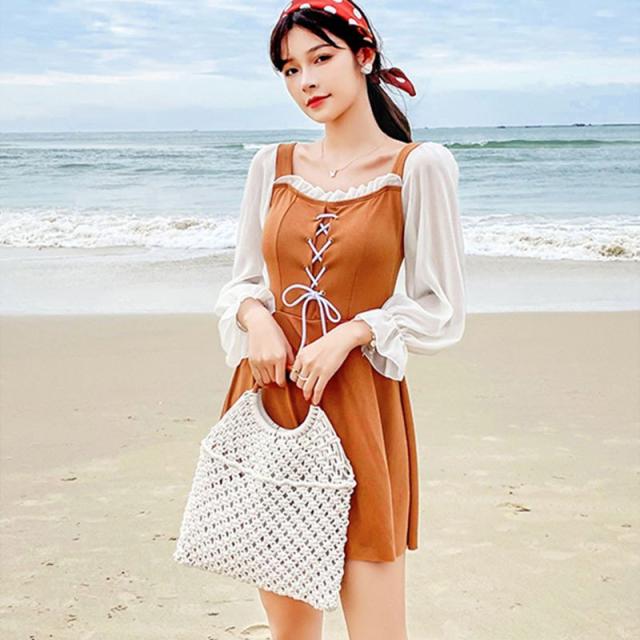 水着 レディース 韓国ファッション ワンピース 体型カバー 20代 30代 40代 フレアワンピ おしゃれ 大人 女性 ママ フレアスカート