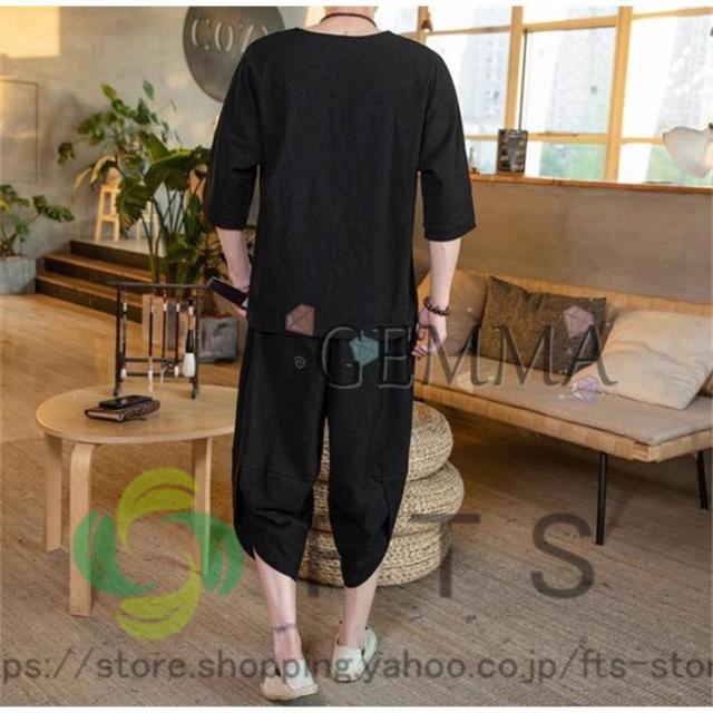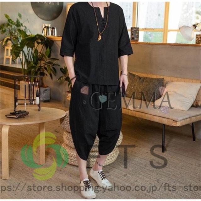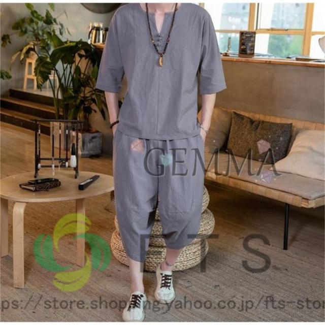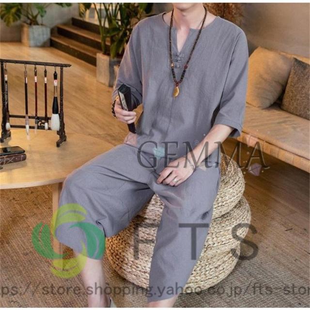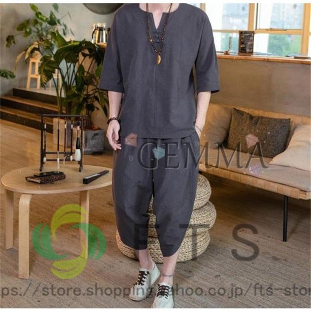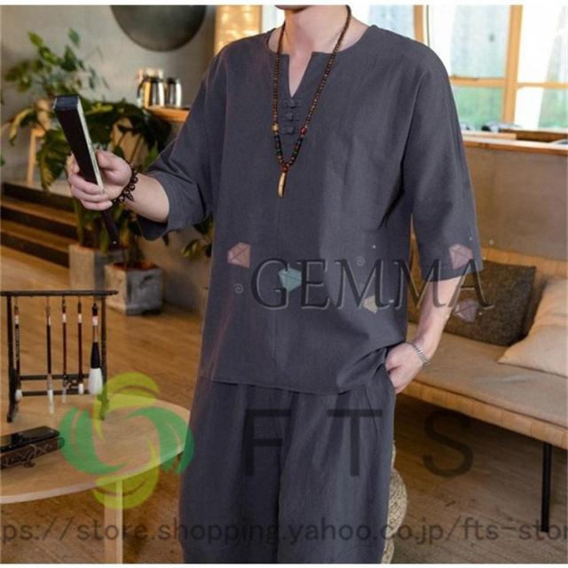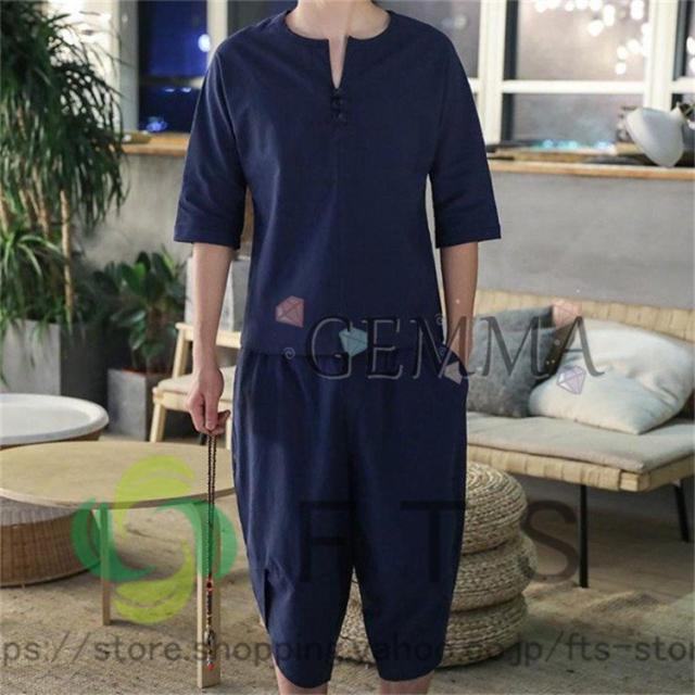 セットアップ メンズ 夏 リネン ジャージ 半袖 シャツ 上下セット スウェット 綿麻 部屋着 薄 男性 中国風 七分丈パンツ