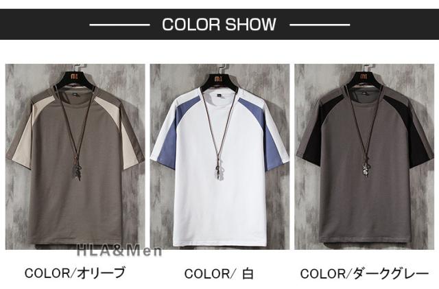無地Tシャツ メンズ Tシャツ 半袖 カットソー カラー切替 トップス コットンTシャツ キレイめ お兄系