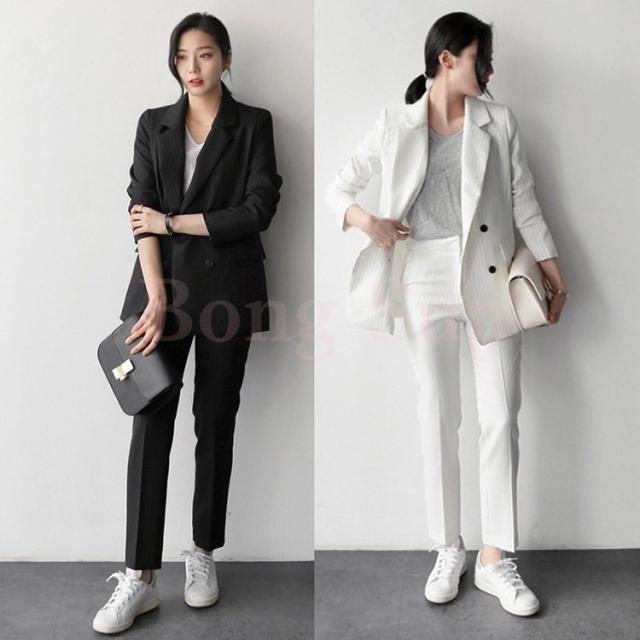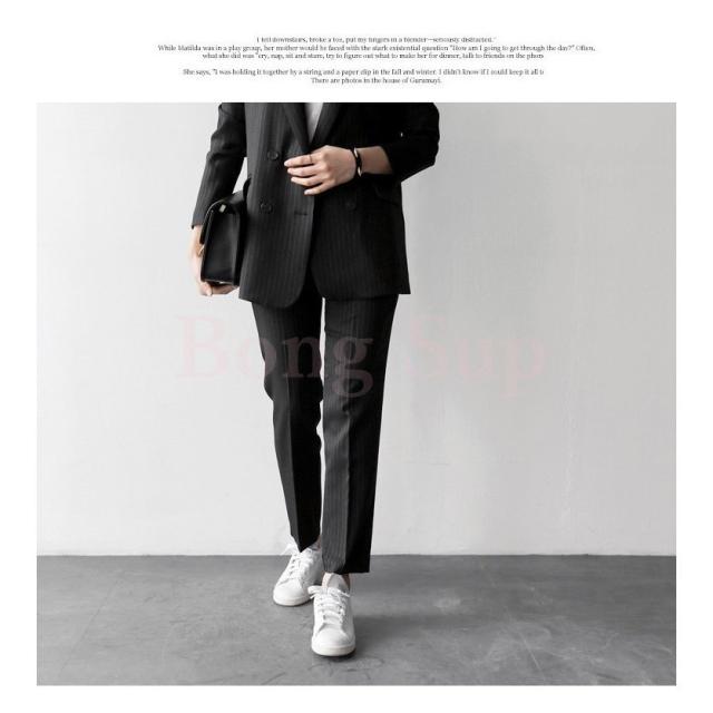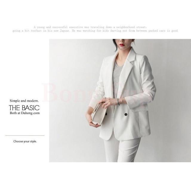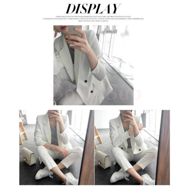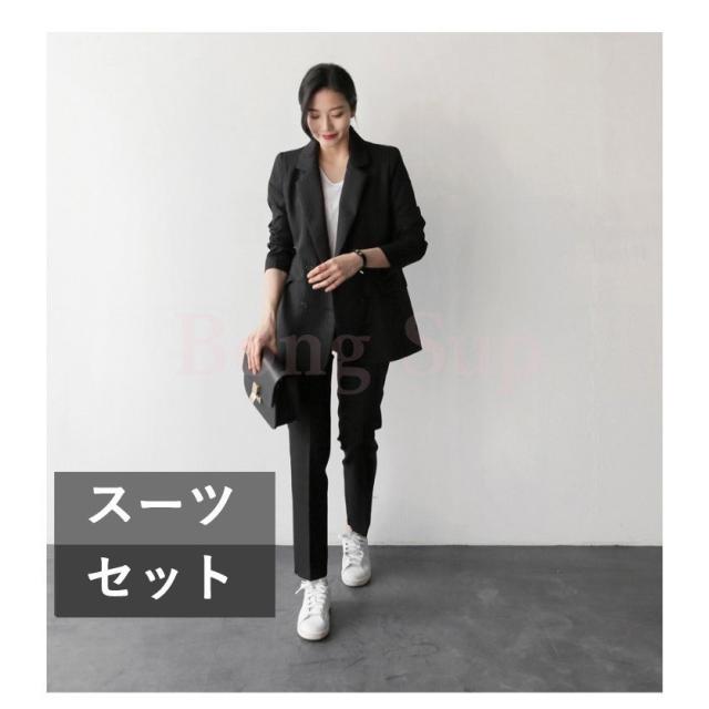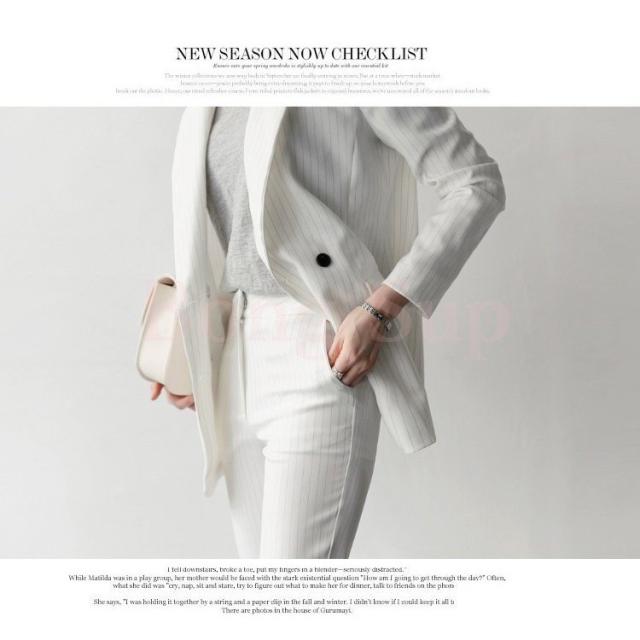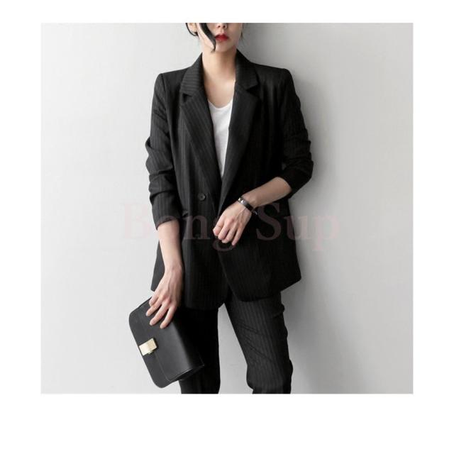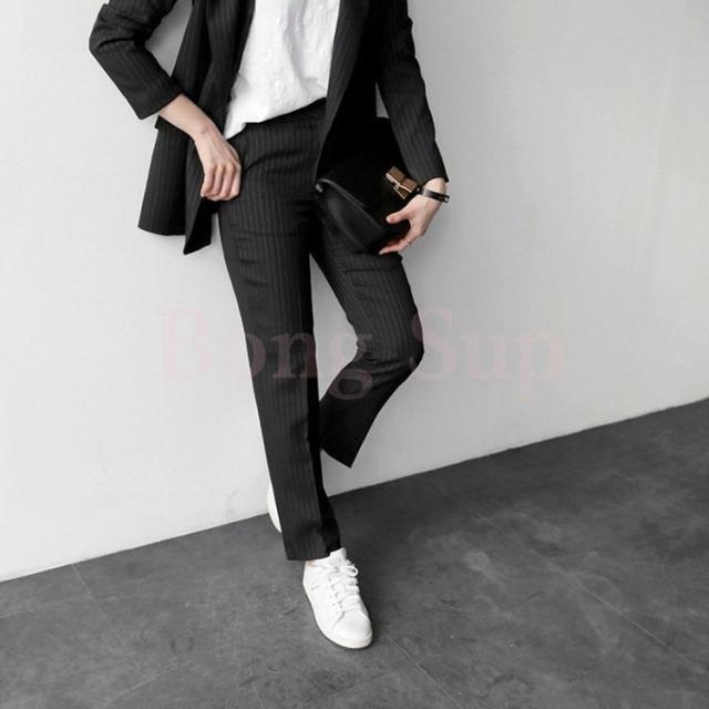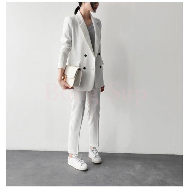 セットアップ レディース 40代 50代 春秋 きれいめ オシャレ 通勤 オフィス 韓国風 上下セット ビジネススーツ ストライプ 上品 2色