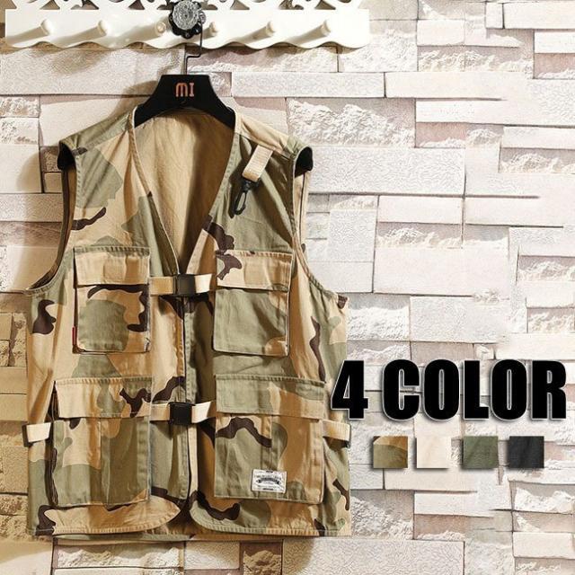 ベスト メンズ ベスト カーゴ カジュアル 人気 大きいサイズ 迷彩 カーゴベスト カジュアルベスト メンズファッション 4色