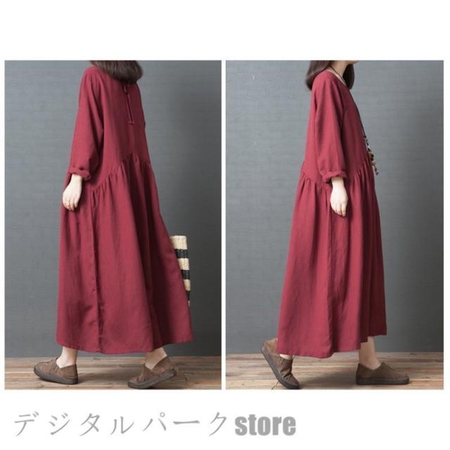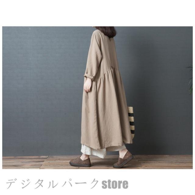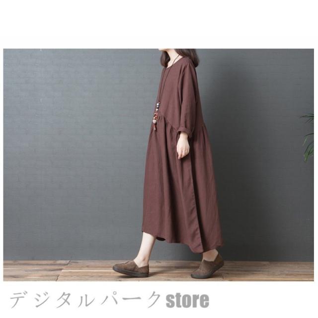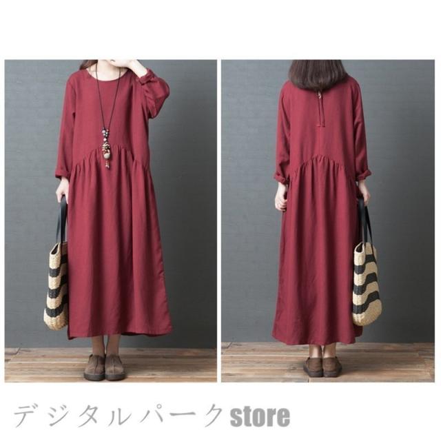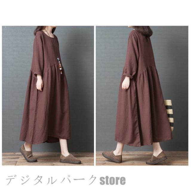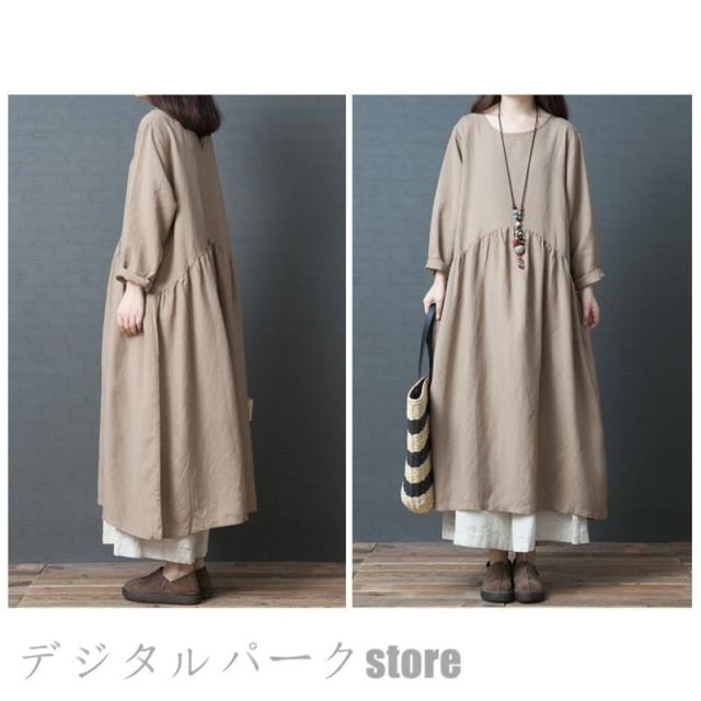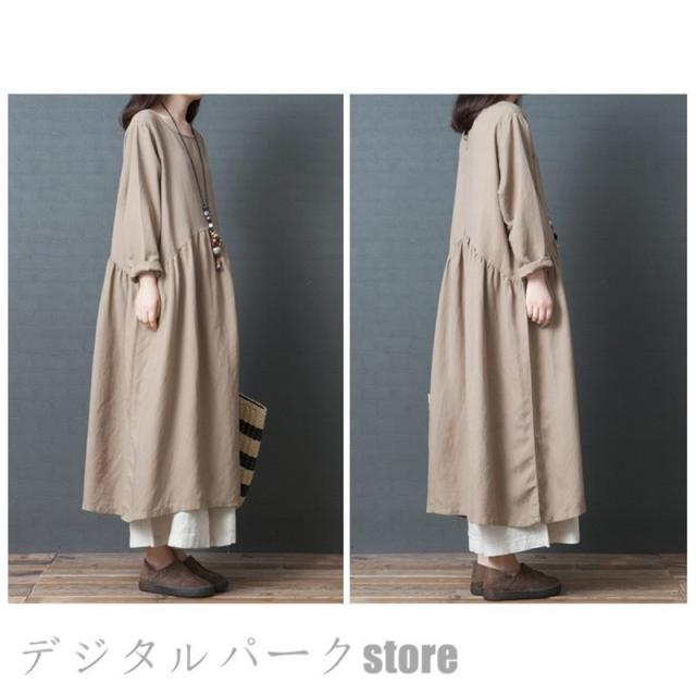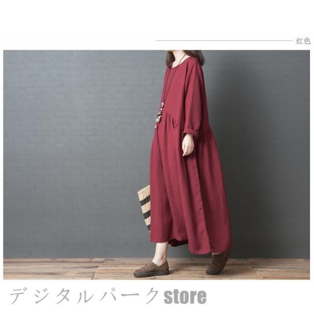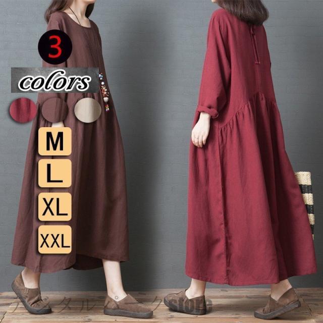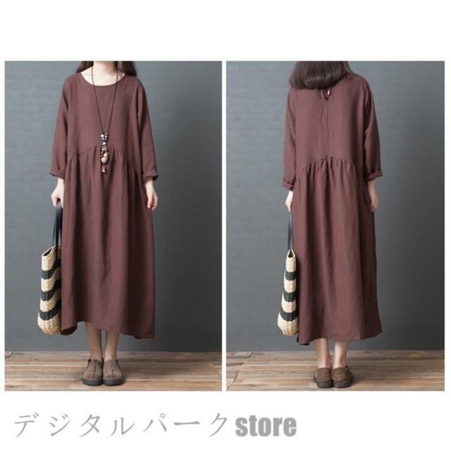 ワンピースレディース 長袖 カジュアルリネン春夏 大きいサイズワンピースパーティードレス お呼ばれワンピース ゆったり シンプル ワンピースレディース