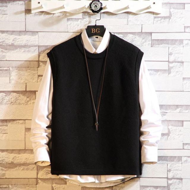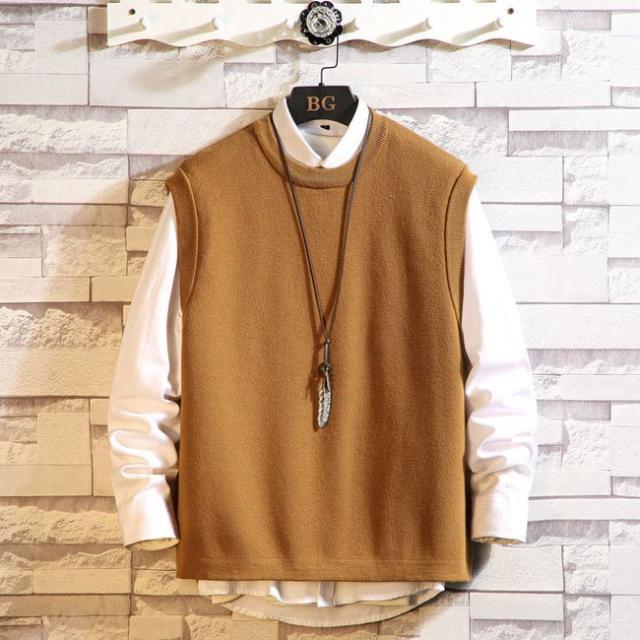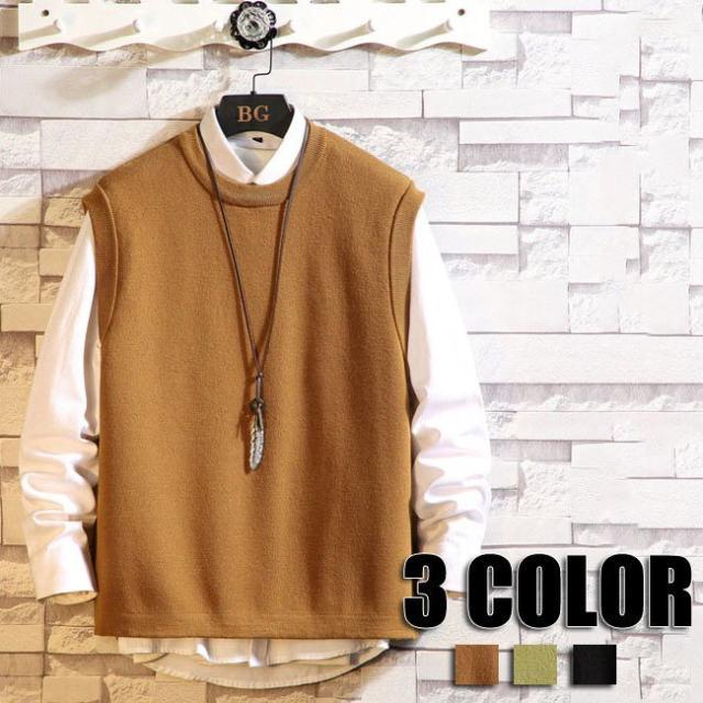 ベスト メンズ ニット カジュアル ニットベスト セーターベスト ベスト メンズ ブラック コーヒー グリーン 秋物 冬物 3色
