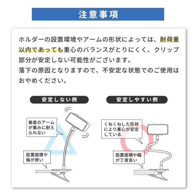 ※アームを曲げる際は、アーム部分を持って調整してください。クリップ部分を持って曲げると破損の原因となりますので、ご注意ください。