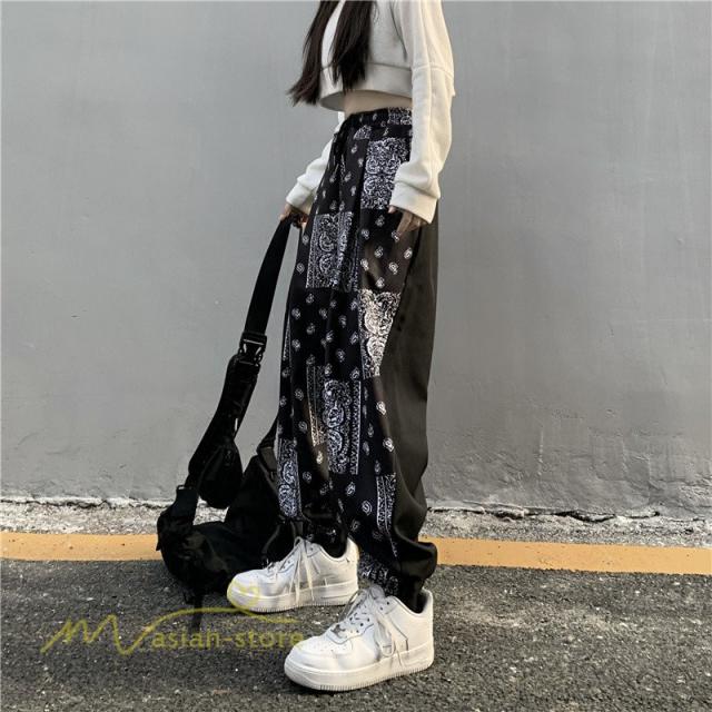 ワイドパンツ レディース テーパードパンツ 着痩せ スウェットパンツ ロング丈 運動着 スポーツ プリント BF風 切り替え フリーサイズ おしゃれ 着回し 日常感