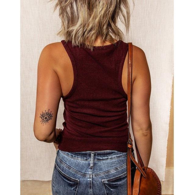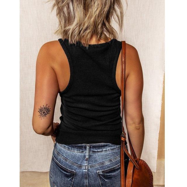 タンクトップ レディース 婦人服 トップス ノースリーブ 前ボタン Uネック リブカットソー グレコタイプ 無地 シンプル おしゃれ カジュアル 普段