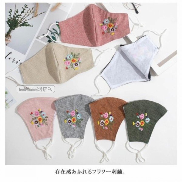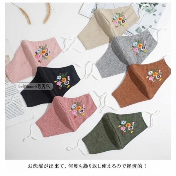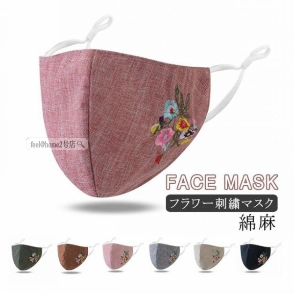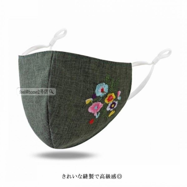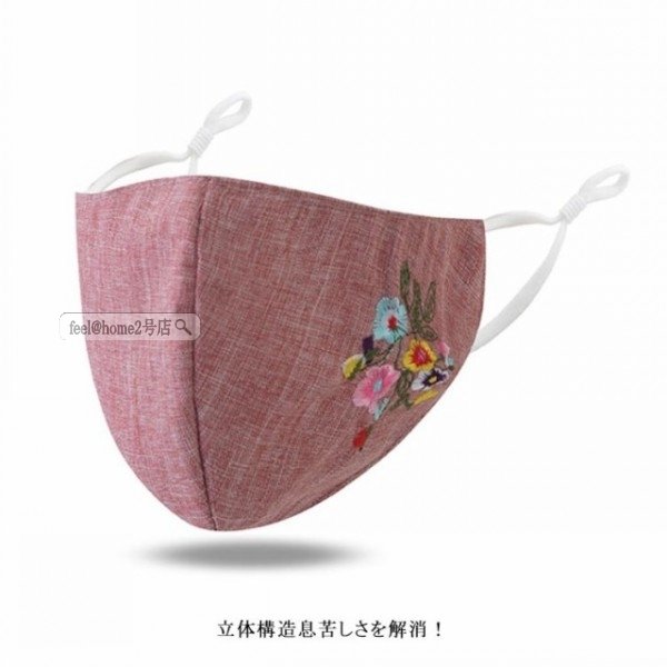 送料無料 花柄刺繍3Dマスク コットン綿素材マスク おしゃれ立体マスク 洗えるマスク オシャレファッションマスク 小顔マスク あったか布マスク UVカ