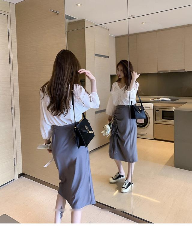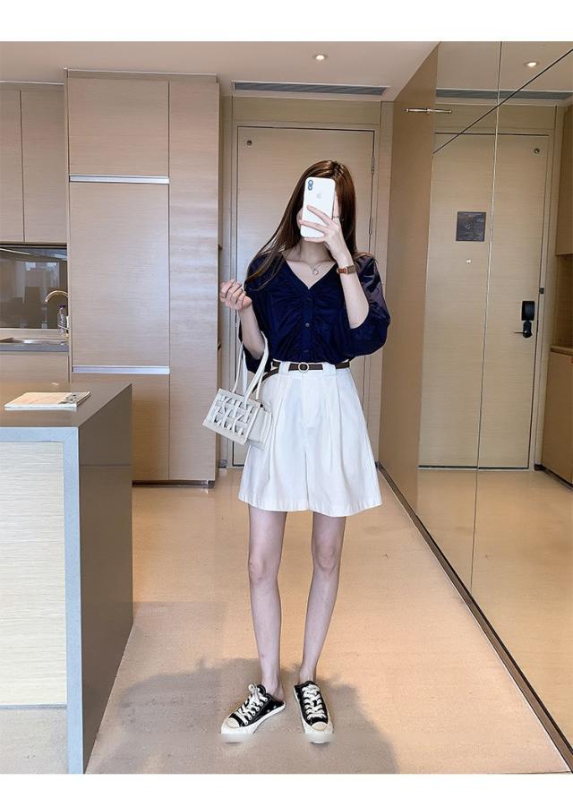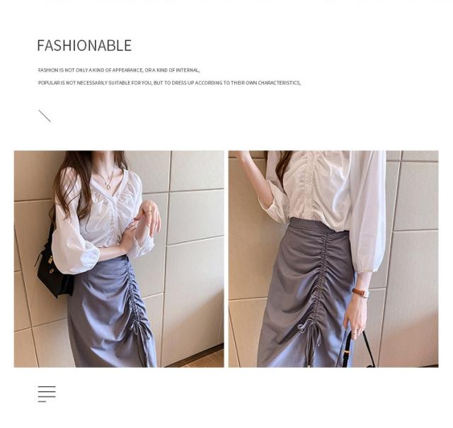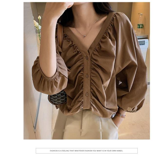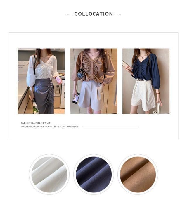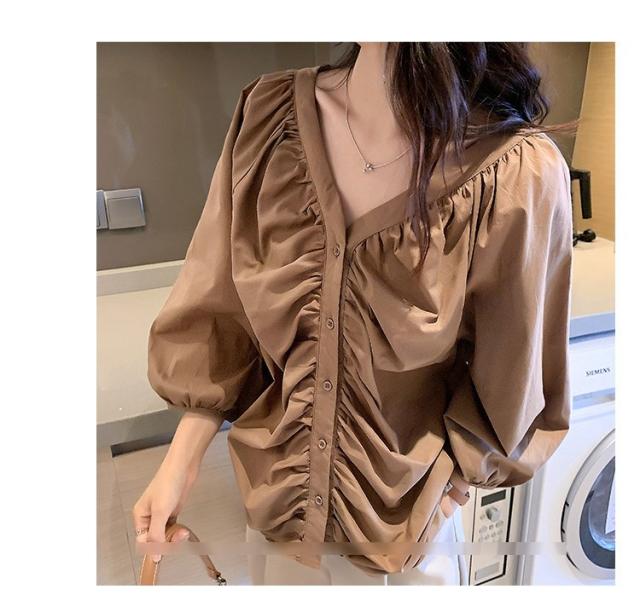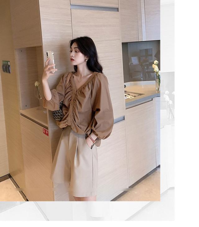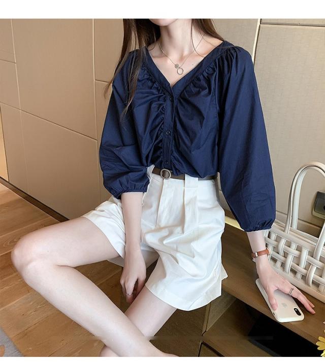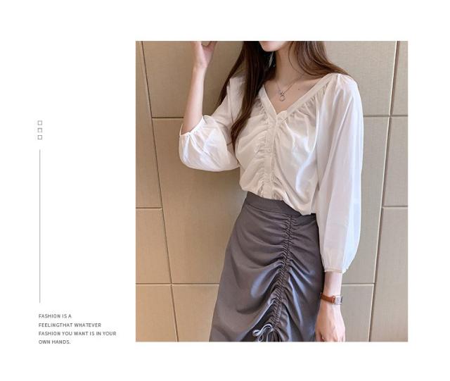 ブラウス レディース 40代 春夏秋 オシャレブラウス 五分袖 パフスリーブ トップス白 VネックTシャツブラウス 大人韓国風 大きいサイズシャツ30代 50代
