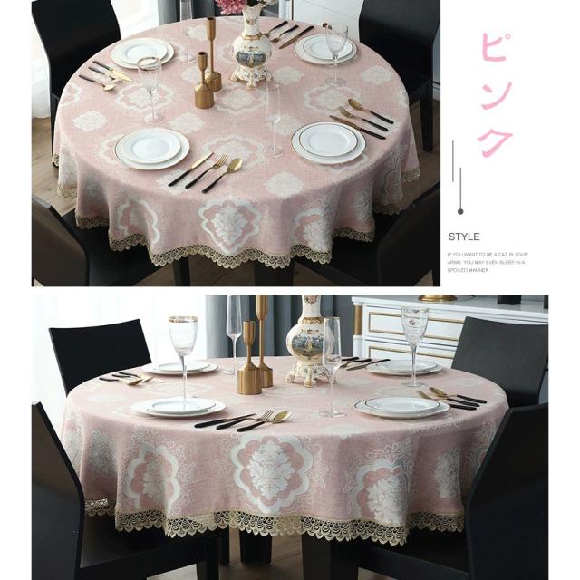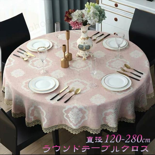 テーブルクロス ラウンドクロス ダマスク柄ジャカード織 食卓カバー 防水防汚 撥油 食卓布 テーブルマット テーブルカバー 丸形 インテリア 家庭用 レストラン
