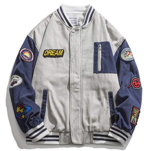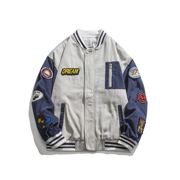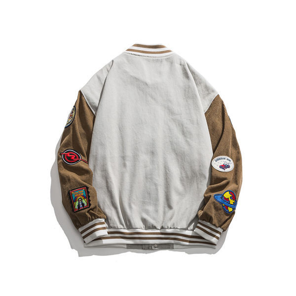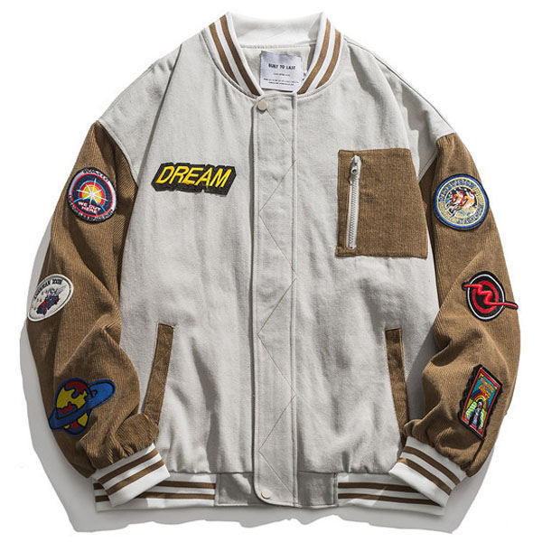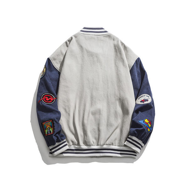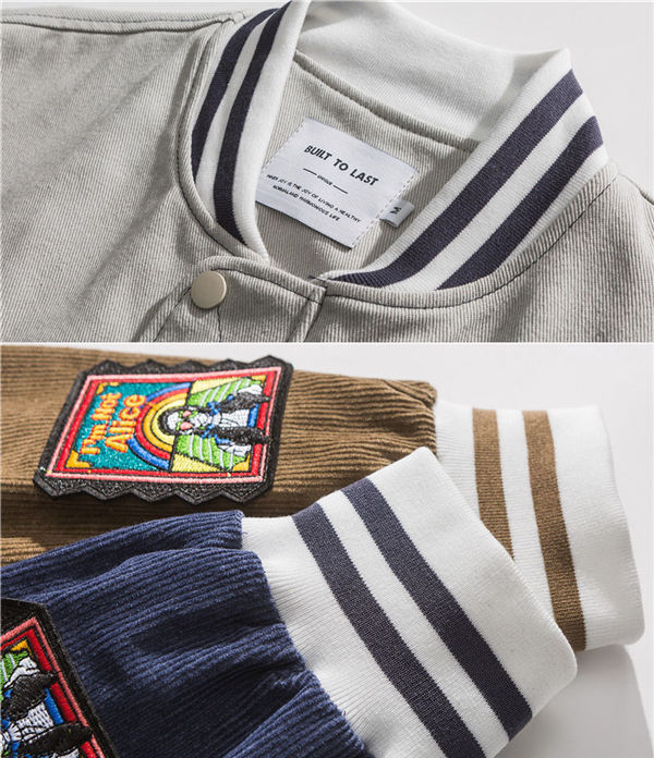 野球ジャケット ミリタリージャケット メンズ ミリタリーワッペン コーデュロイ コール天 ジャケット ジャンパー スポーツ 運動風 野球 配色切替え