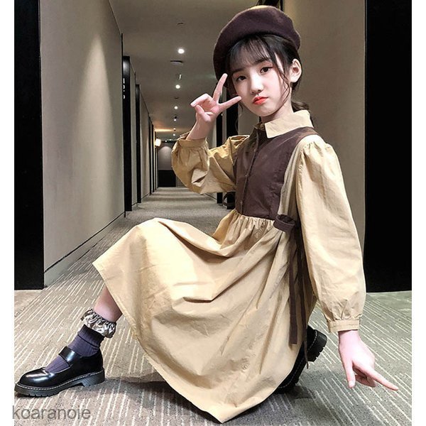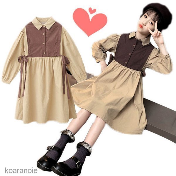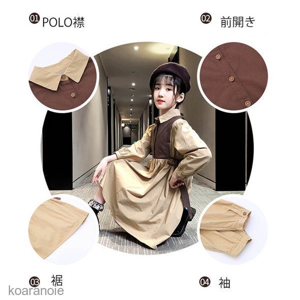 子供服 キッズ ワンピース 女の子 長袖ワンピース 春秋 Aライン 森ガール ワンピース 可愛い 韓国風 襟付き 韓国子ども服 ワンピース カジュアル おしゃれ