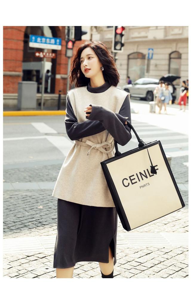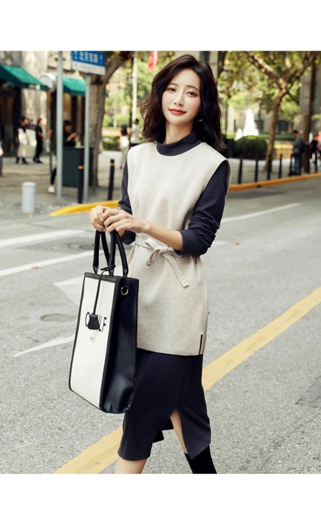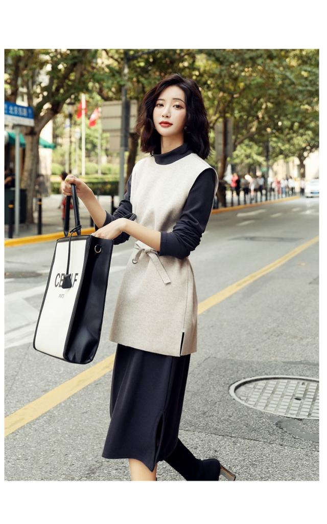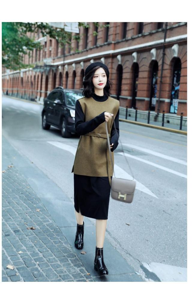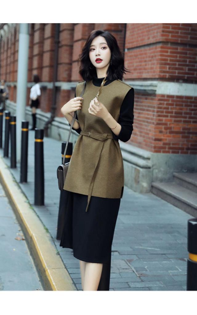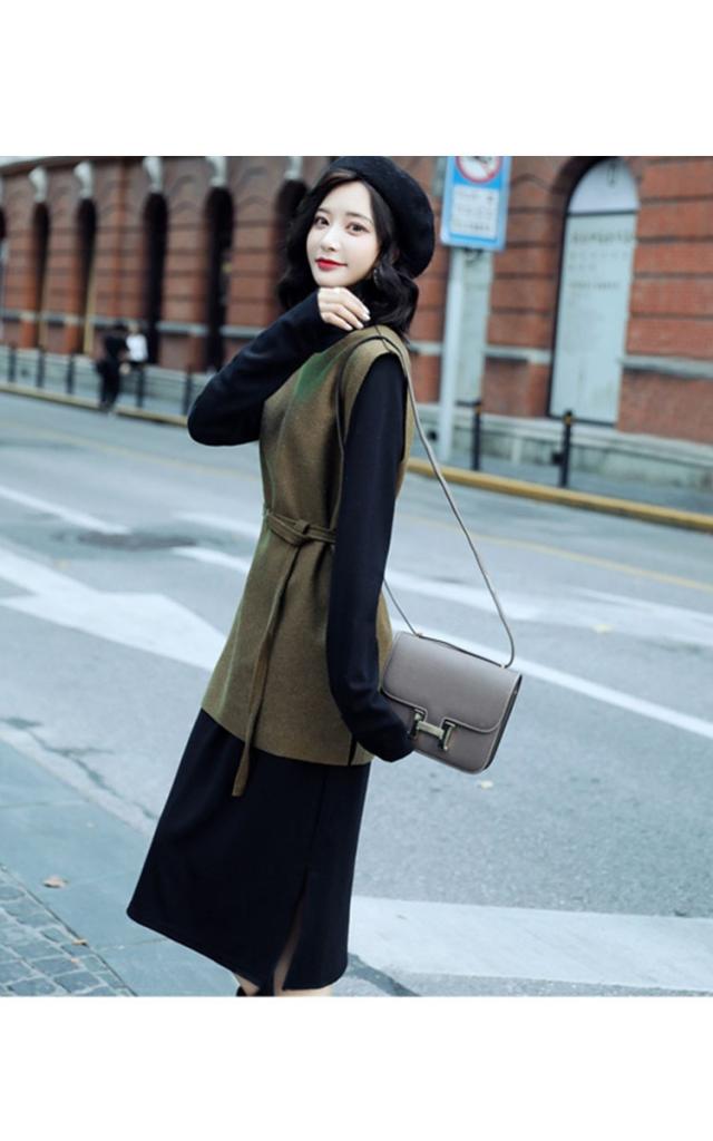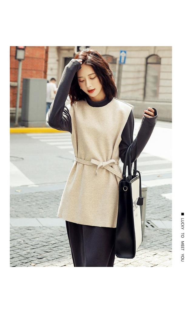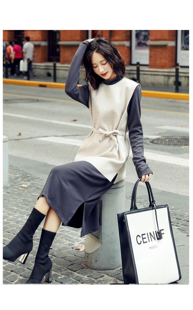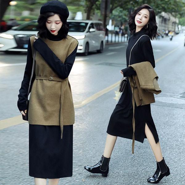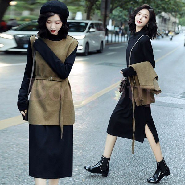 2点セット レディース ニットワンピース ドレス ベルト付き プリーツ メリヤス スカート 長袖 ルロング丈 秋冬 ワンピース 無地 韓国風 着痩せ 通勤 新作