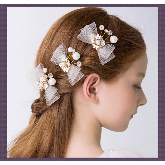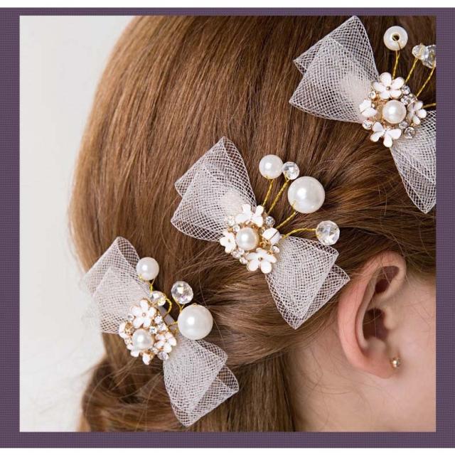 3本セット 髪飾り ヘアピン ヘアクリップ 花 子供 発表会 子供ドレス 七五三 アクセサリー 女の子 フォーマル 子供ヘッドドレス パール付き 結婚式 花嫁 成人式