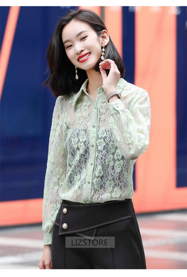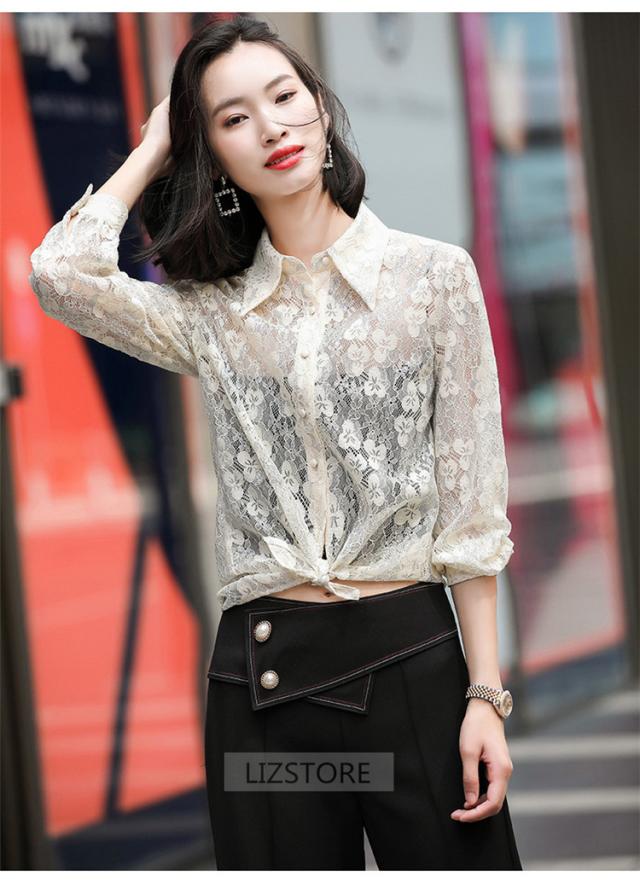 ブラウス レディース お洒落 レース 長袖 春 夏 トップス レースブラウス きれいめ 透かし雕り 大人 お出かけ 通勤