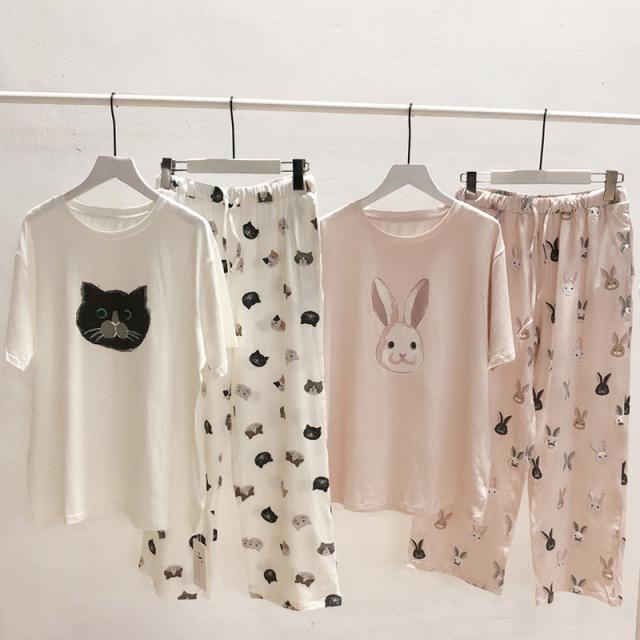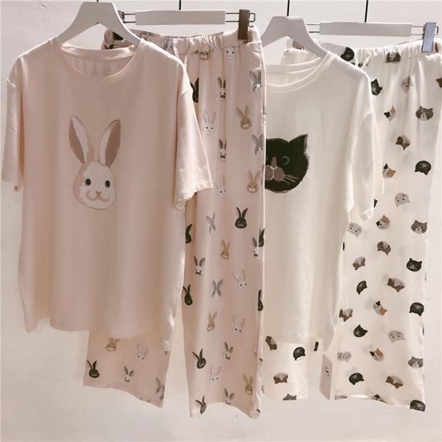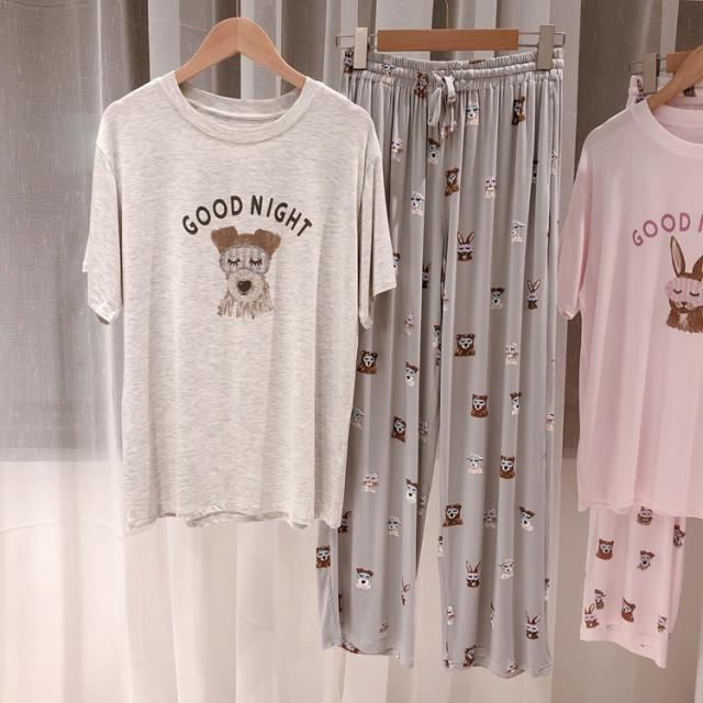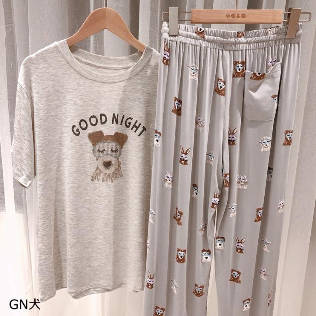 パジャマ ルームウェア レディース 春夏 半袖 パジャマ ルームウェア 兎/犬柄 モダール綿上下セット パジャマ 部屋着 寝巻き オシャレ ゆったり カジュアル