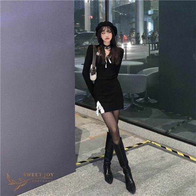 ワンピース レディース 長袖 ミニ丈 春秋物 ハイウエスト ファッション タイト 通勤OL お呼ばれ オシャレ 着痩せ 韓国風 着回し