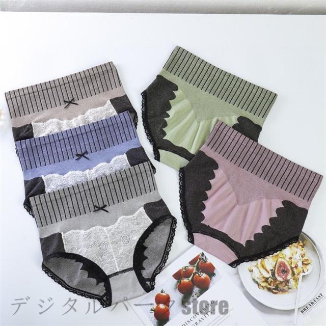 5枚セット ショーツ パンツ 下着 レディース グラフェン抗菌 女性用 ハイウエスト 腹を収める ストレッチ コットン フィット感 インナー レース 大きいサイズ
